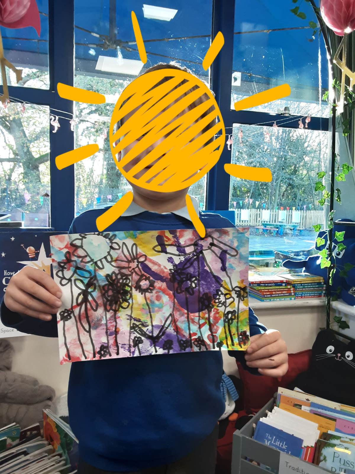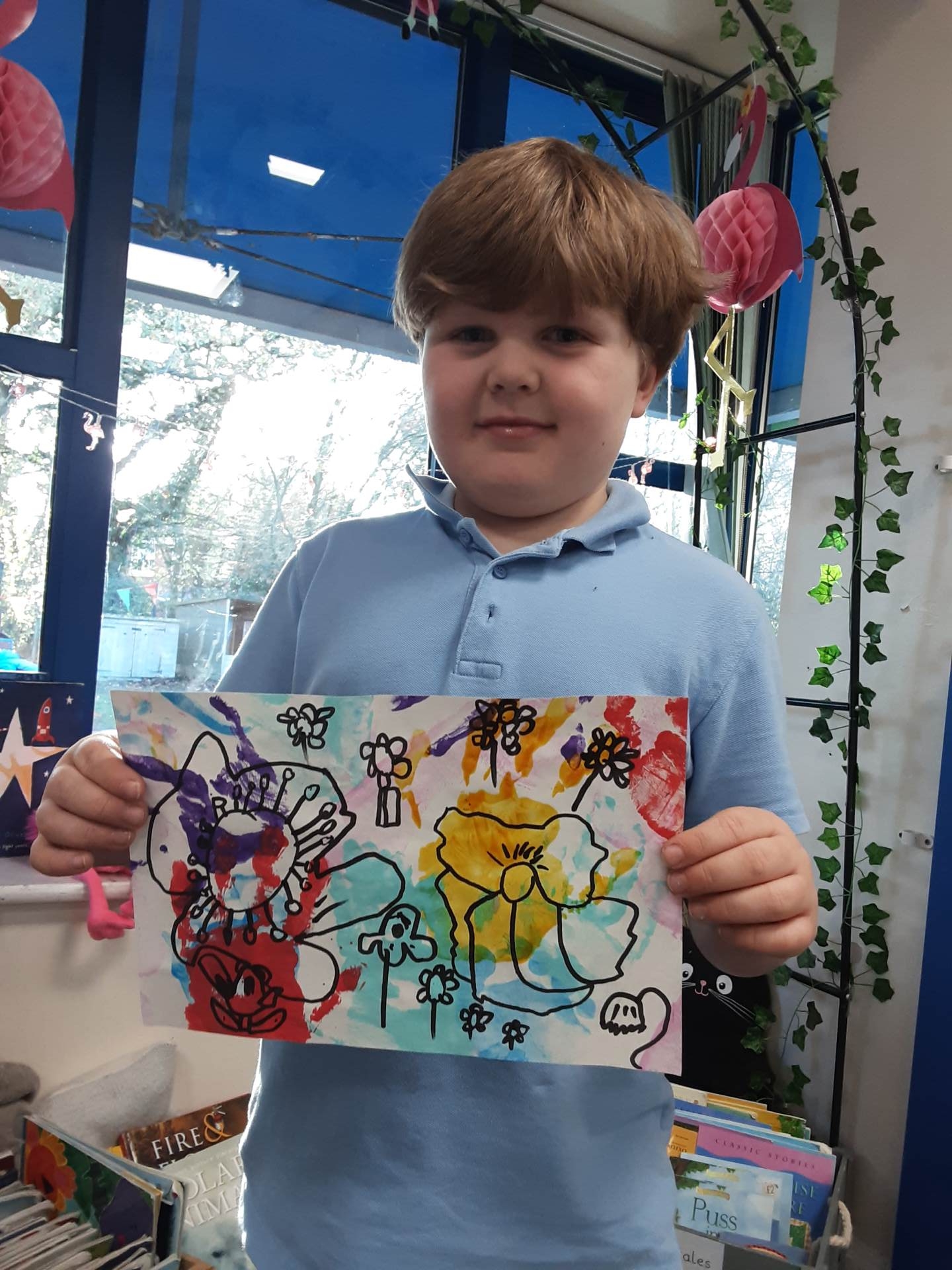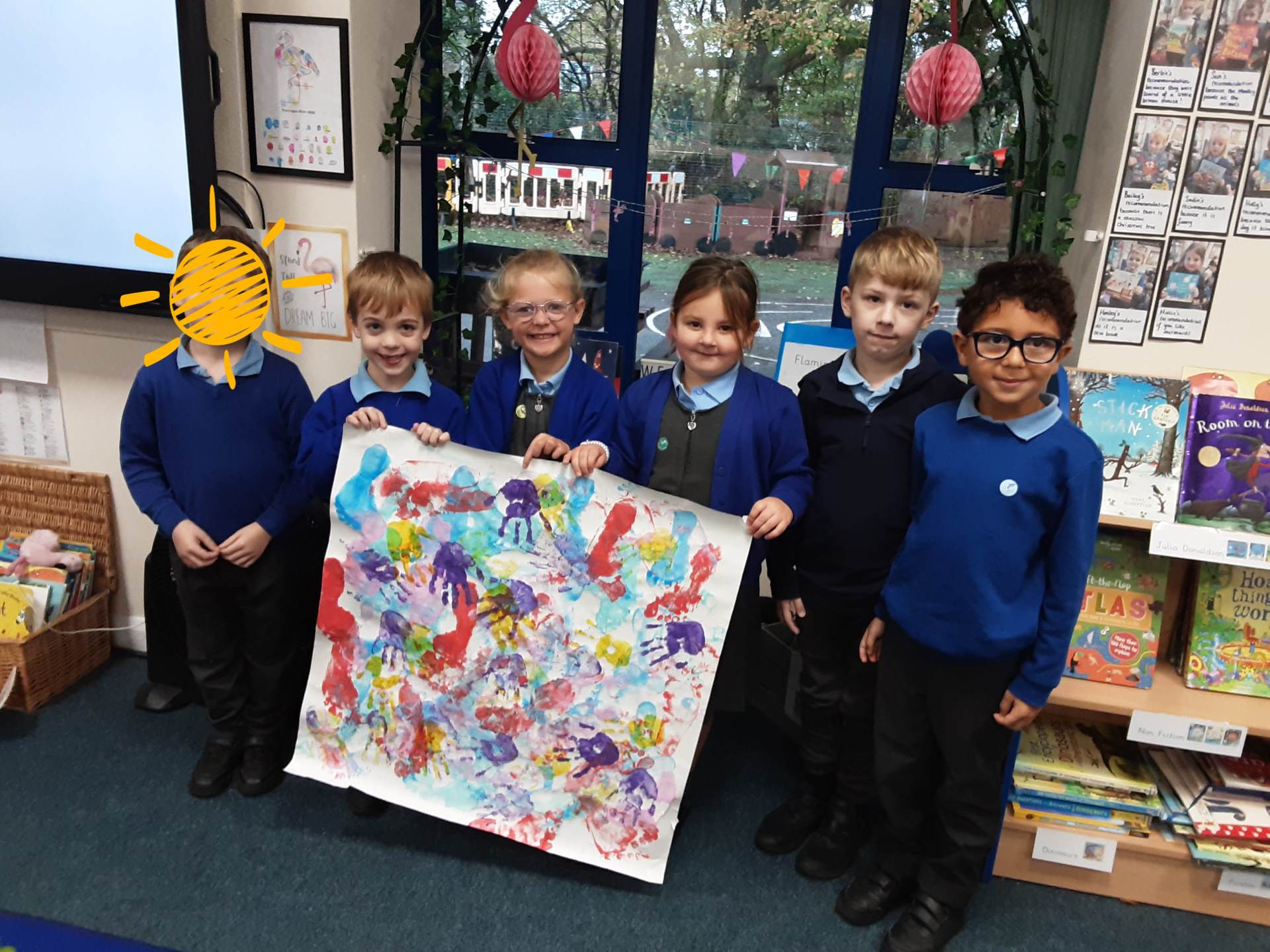 This week, our table groups worked collaboratively to create a wonderful piece of artwork. Each child used either their handprint or footprint to make their mark on a large sheet of paper, choosing a different colour to contribute to the design. The children are extremely proud of their collective masterpiece, and next week we will be using these colourful prints as the canvas for our next exciting art project!