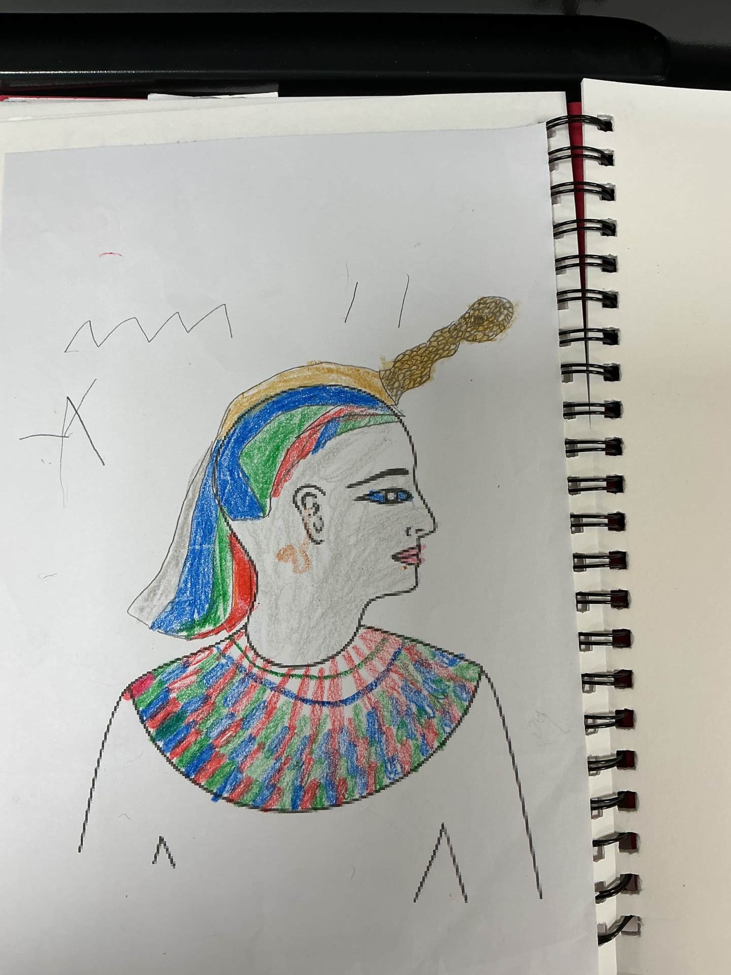 We looked at Ancient Egyptian portraits and created our own plan for an Egyptian side profile portrait.
