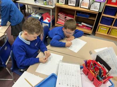 In Maths, we have been learning about money. We practised making ?1 in lots of different ways using coins.