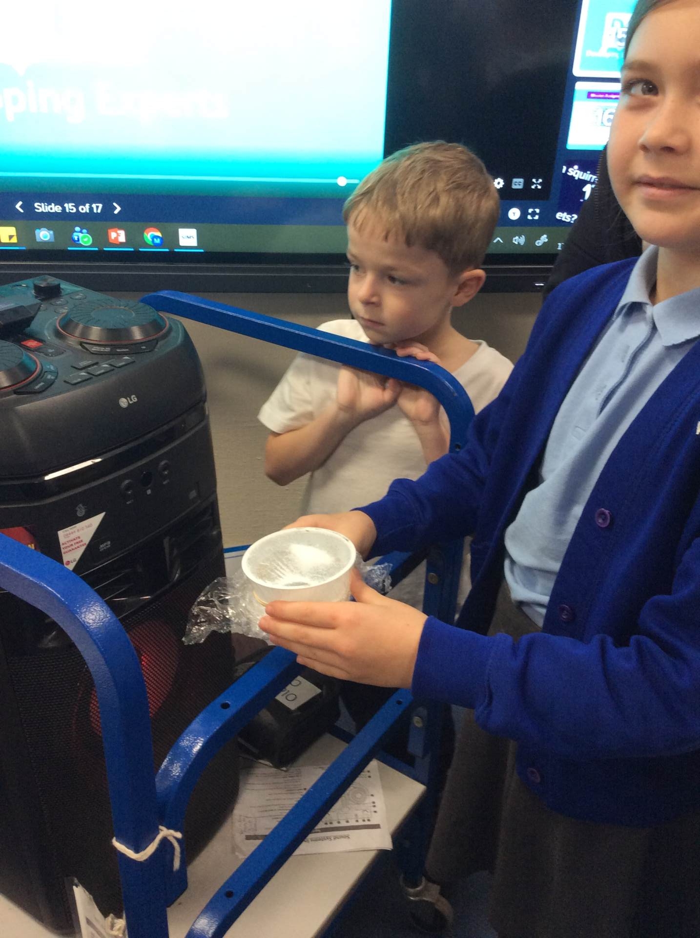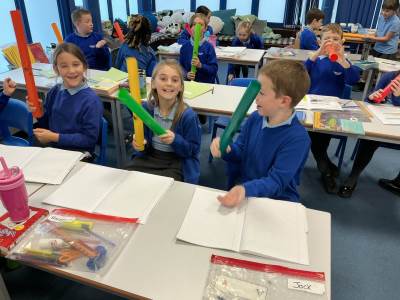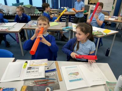Today, we were investigating what happens to sound as it passes through solid, liquids and gases. We loved taking part in the experiments.