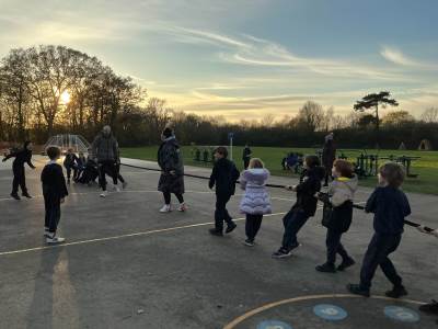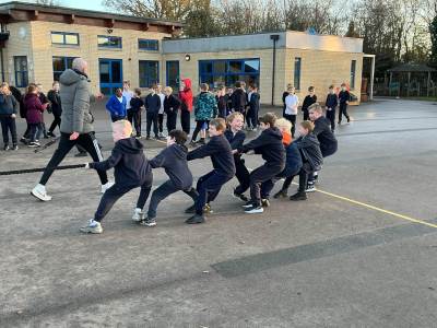 Today, we combined History and P.E. and took part in The Olympic Games. We took part in chariot racing, discus, javelin, long jump, sprinting, archery and tug of war. We thought it was the best P.E. lesson ever!