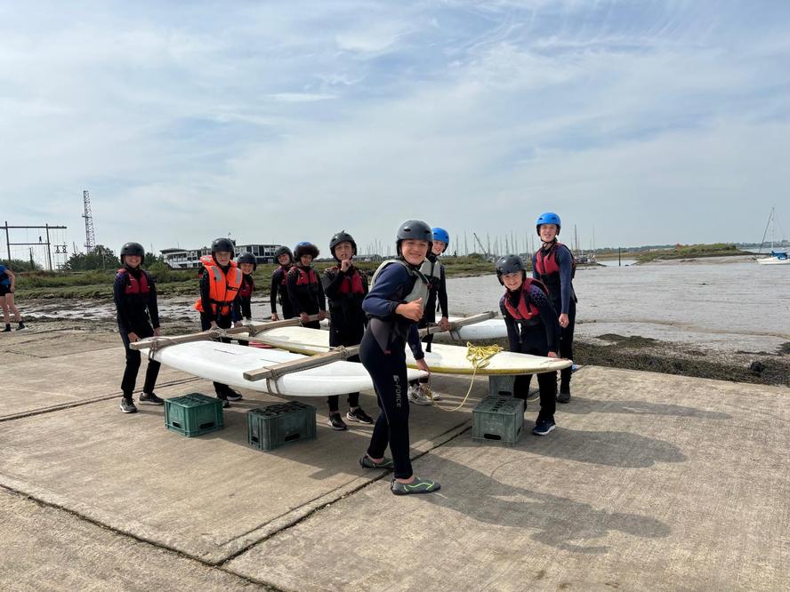 Groups 7 & 8 building their rafts:
