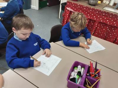 In Art, we practised drawing spirals in our sketchbooks, focusing on careful pencil control.