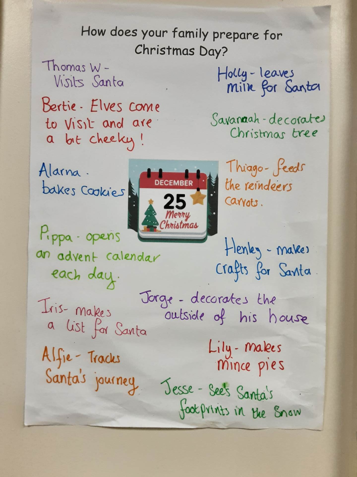 This week we enjoyed celebrating our differences on Odd Socks Day — everyone’s socks were wonderfully unique! On Tuesday 11th November, I was very proud of Flamingo Class for respectfully observing our school’s two-minute silence. We had a lovely time creating fingerprint poppy artwork to help us remember this important day. In RE we explored our Christmas family traditions and discussed the different ways we prepare for the festive season. We looked at advent calendars and imagined what a kindness advent calendar might include. Each child then chose one thoughtful action they could carry out in the lead-up to Christmas. Parents, take note—some children pledged to tidy their bedrooms or even help by laying the table for dinner!