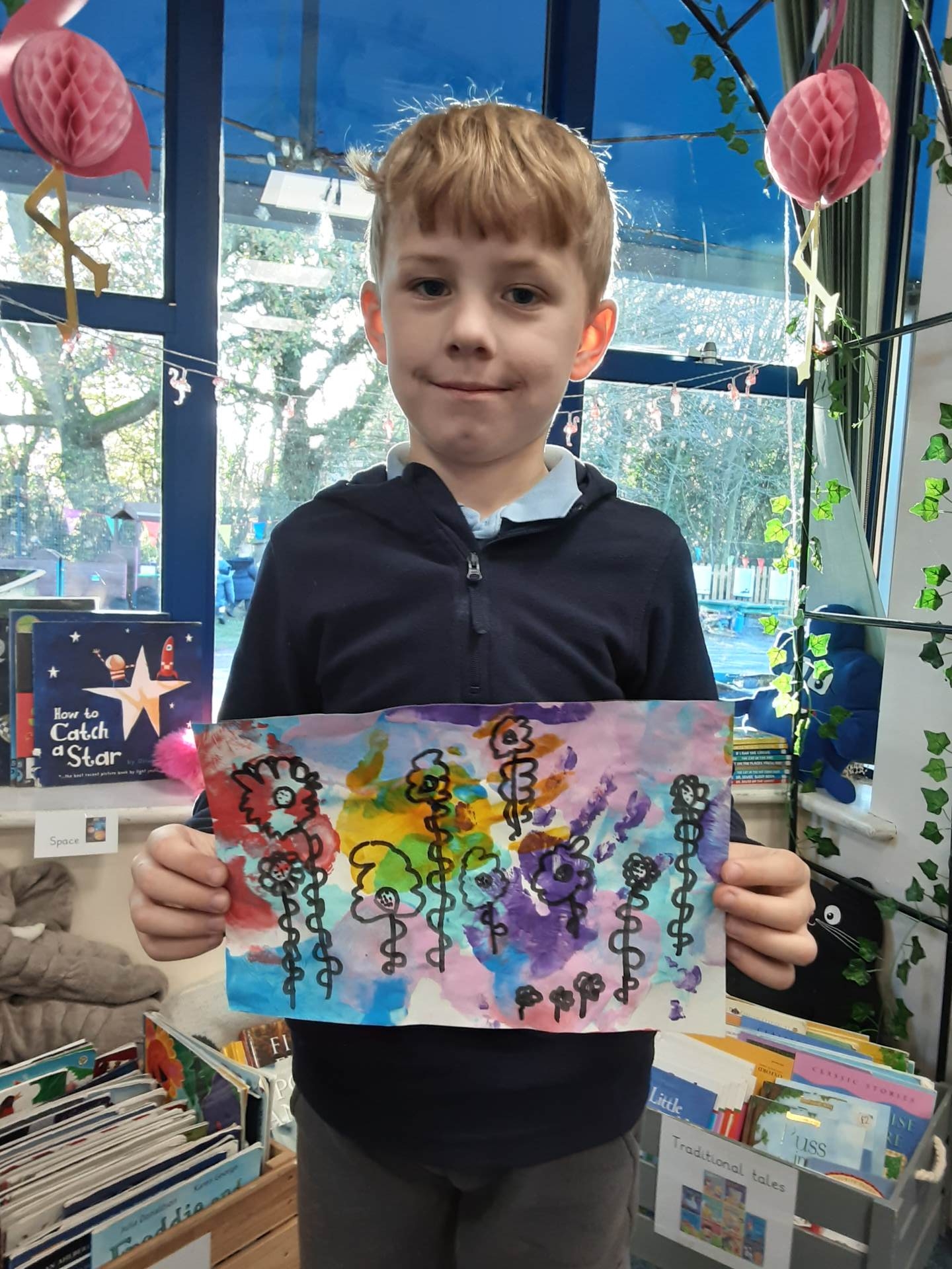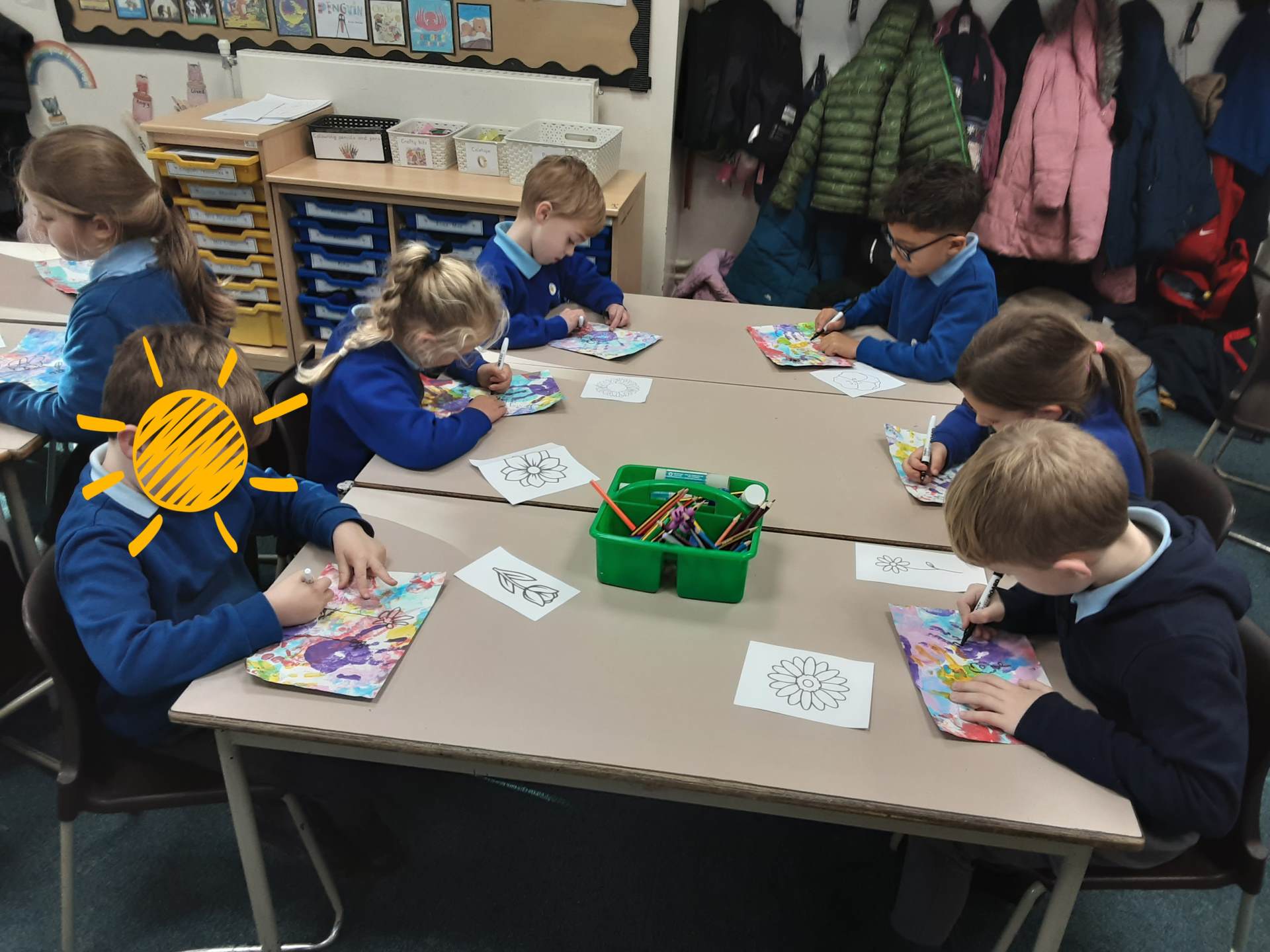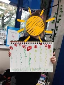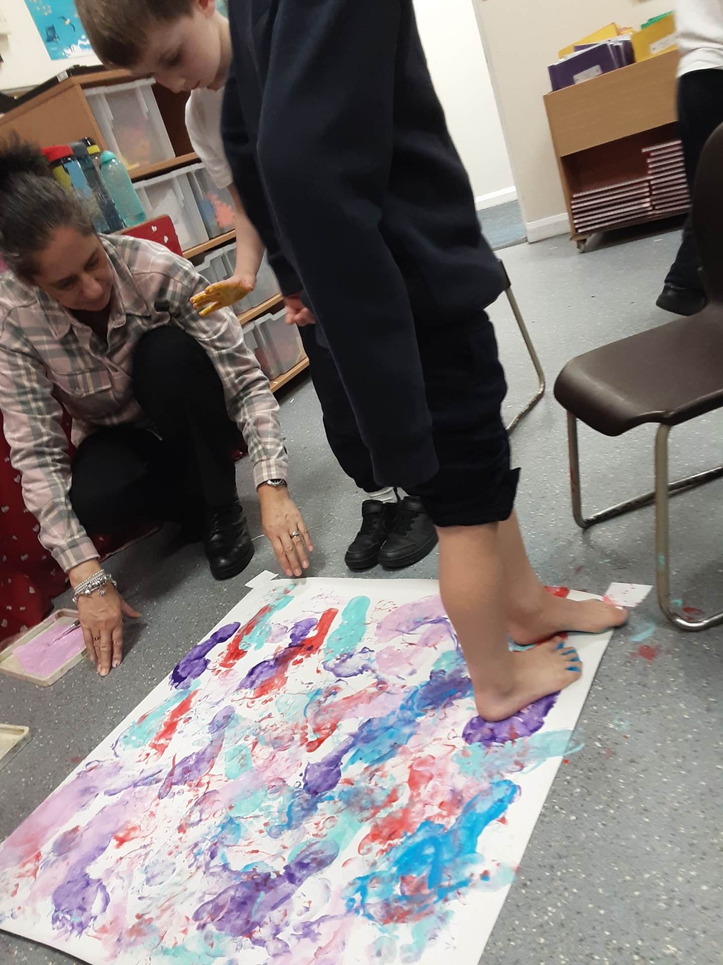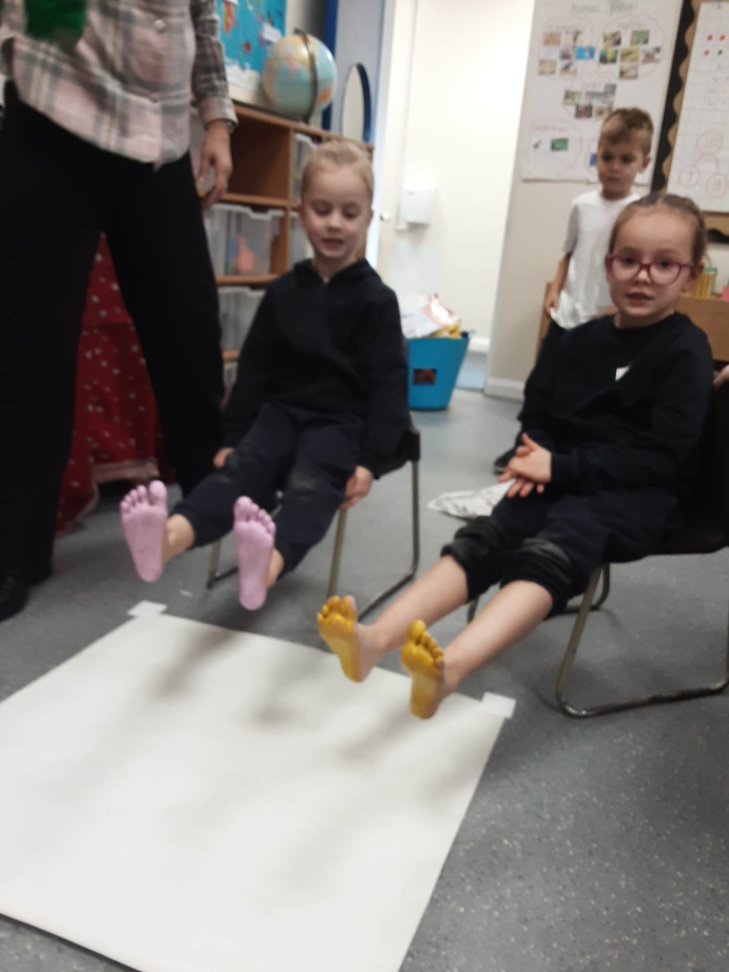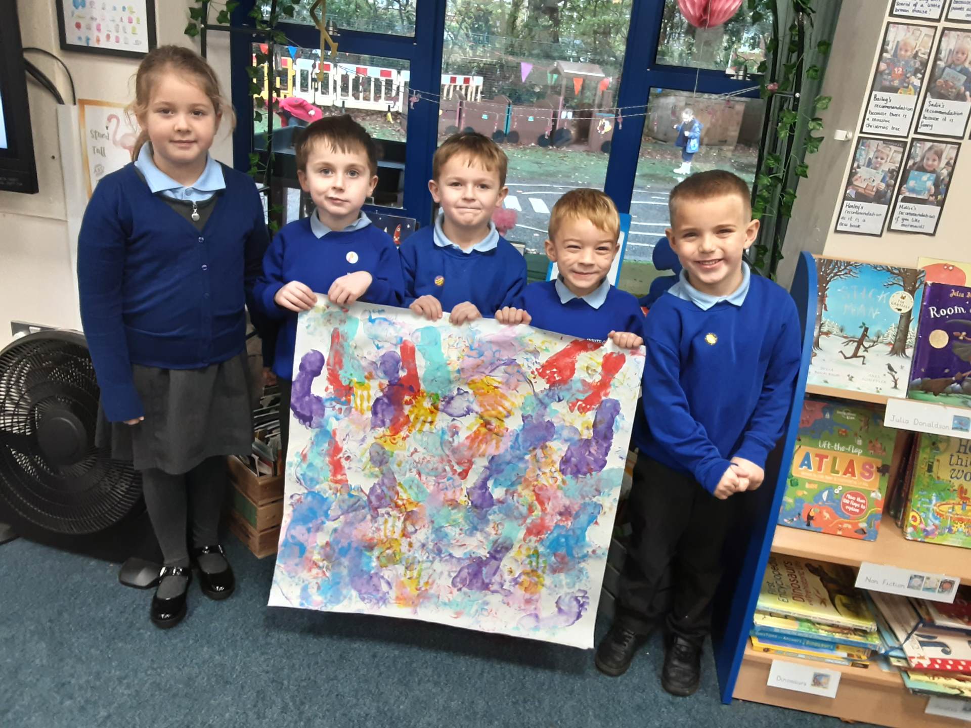This week, our table groups worked collaboratively to create a wonderful piece of artwork. Each child used either their handprint or footprint to make their mark on a large sheet of paper, choosing a different colour to contribute to the design. The children are extremely proud of their collective masterpiece, and next week we will be using these colourful prints as the canvas for our next exciting art project!