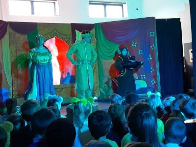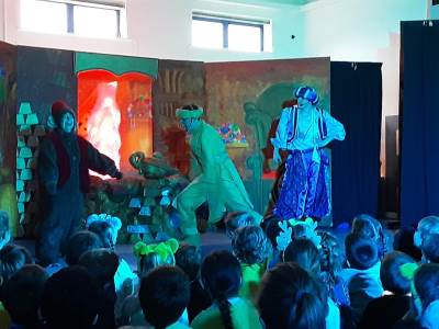 Mrs Woods, Mr Brownsell and Miss Bird were surprised to find themselves volunteered to dance in the Panto - much to the children's delight!