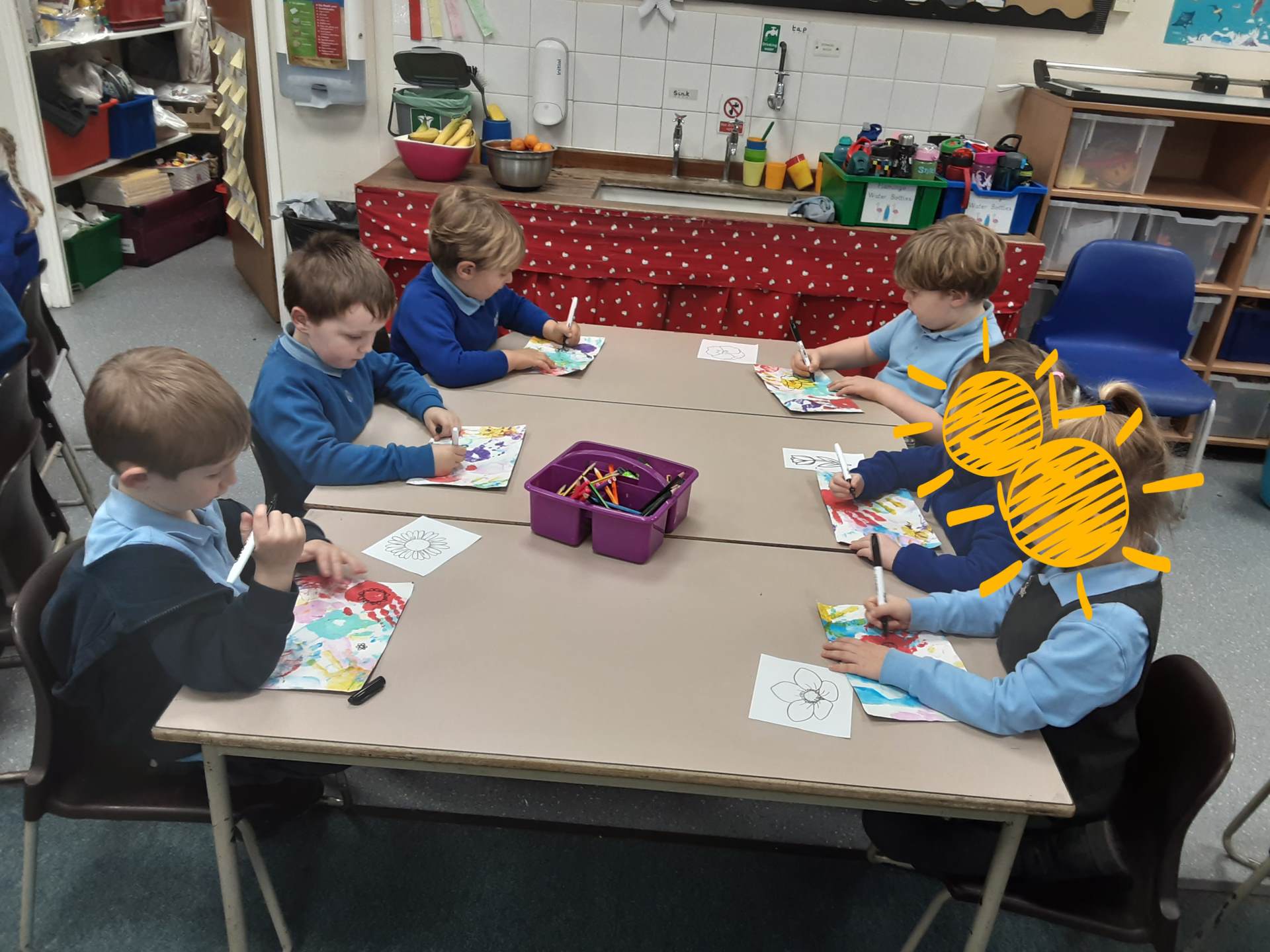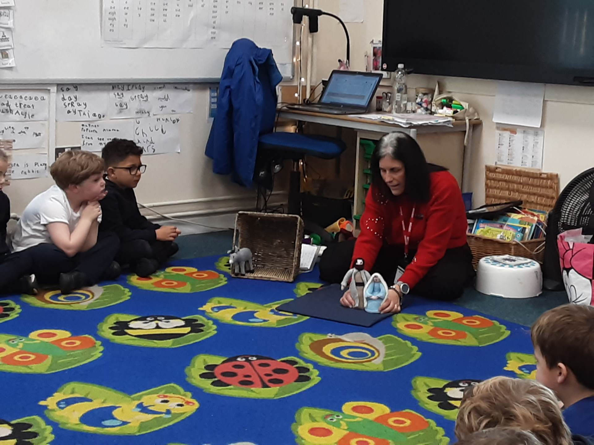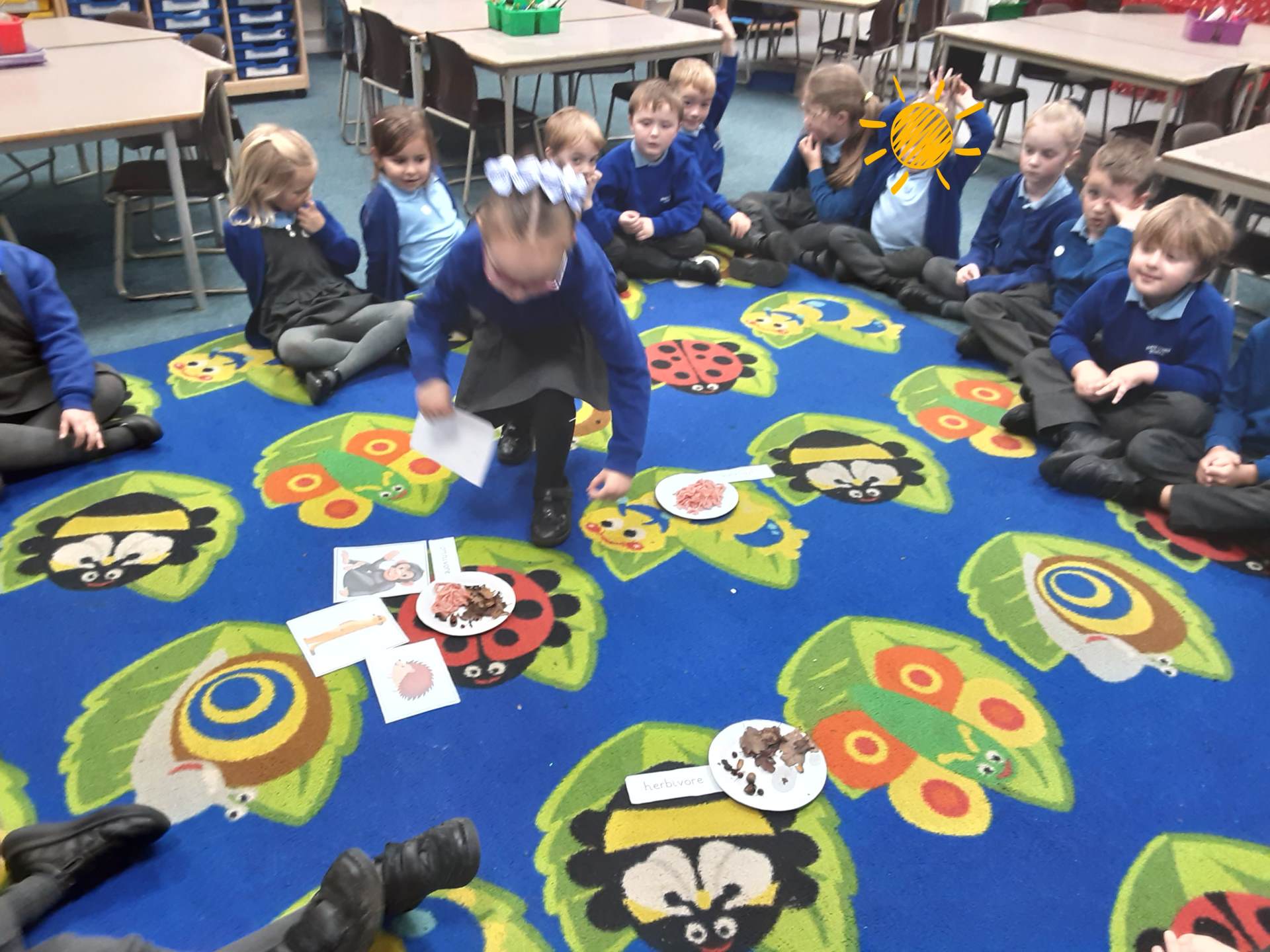 This week in Science, we have been sorting animals into their three groups: herbivores, carnivores and omnivores. In RE, we welcomed Katie from Notley Church, who visited to discuss the Nativity Story. She used puppets to retell the story and encouraged the children to think of ways they could send a message of love to others. In Art, the children completed their hand and foot canvases by adding beautiful flower outlines. They are very proud of their stunning finished pieces!