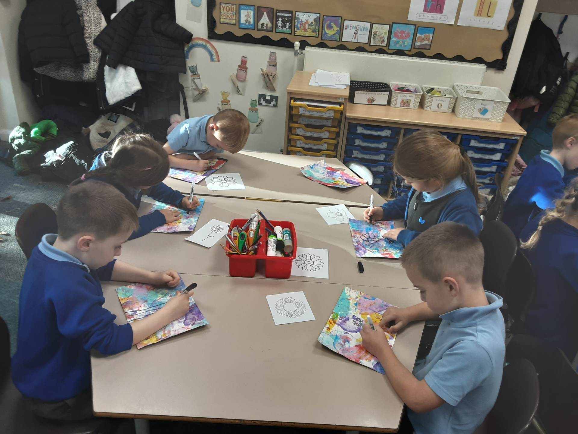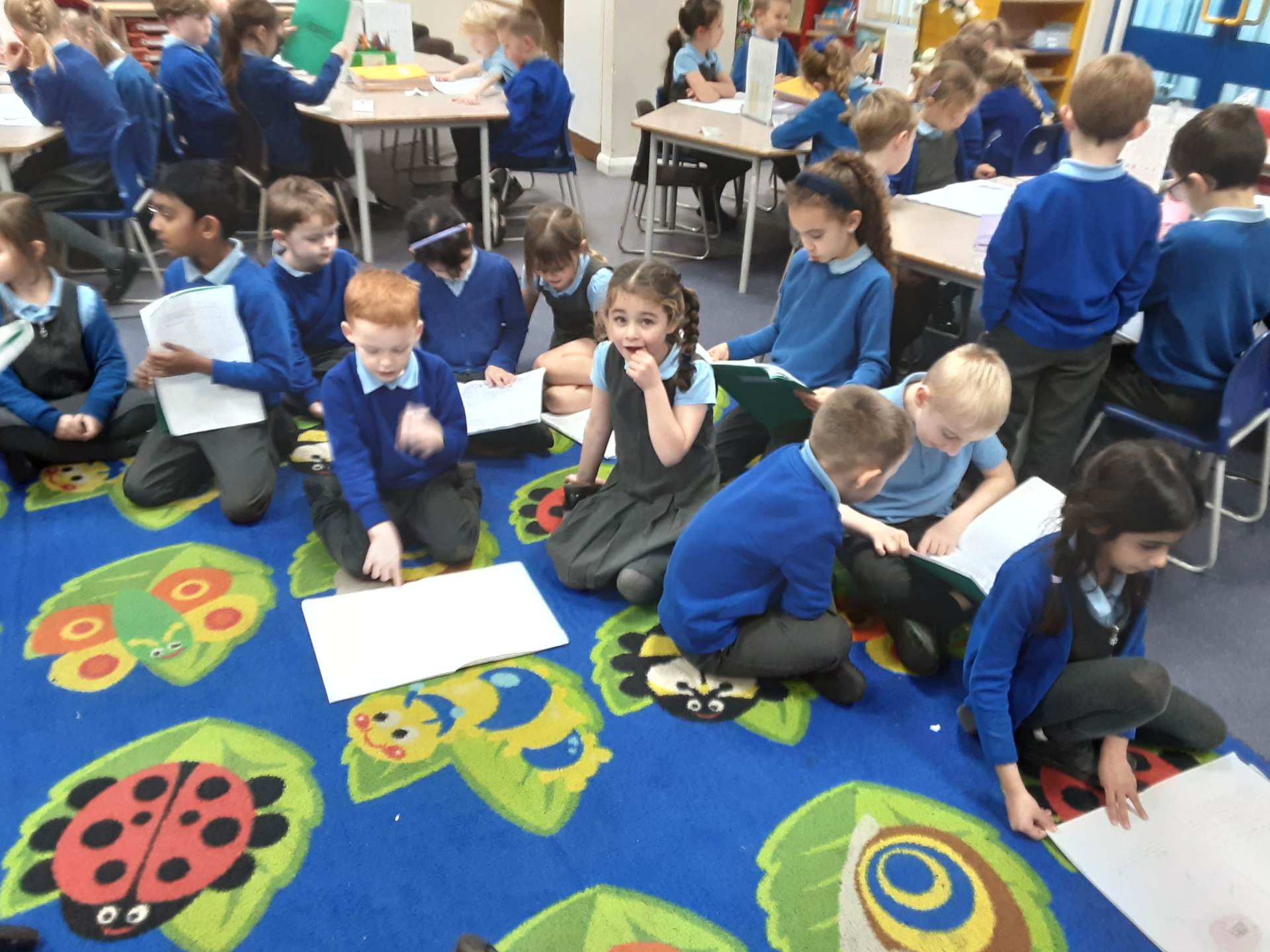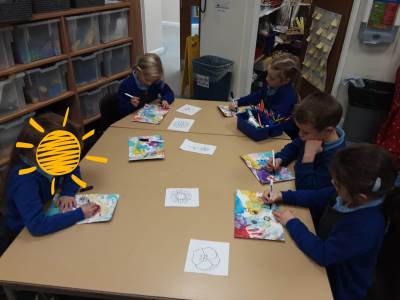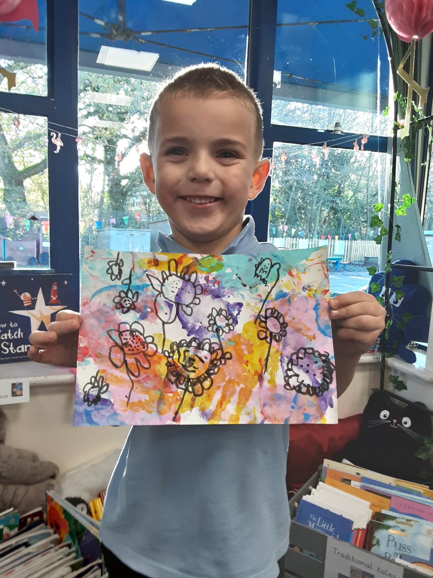 This week in Science, we have been sorting animals into their three groups: herbivores, carnivores and omnivores. In RE, we welcomed Katie from Notley Church, who visited to discuss the Nativity Story. She used puppets to retell the story and encouraged the children to think of ways they could send a message of love to others. In Art, the children completed their hand and foot canvases by adding beautiful flower outlines. They are very proud of their stunning finished pieces!