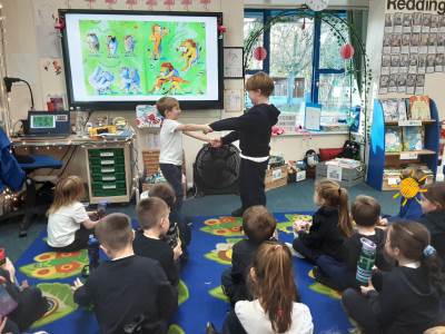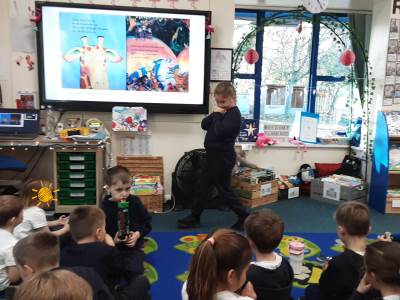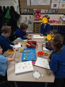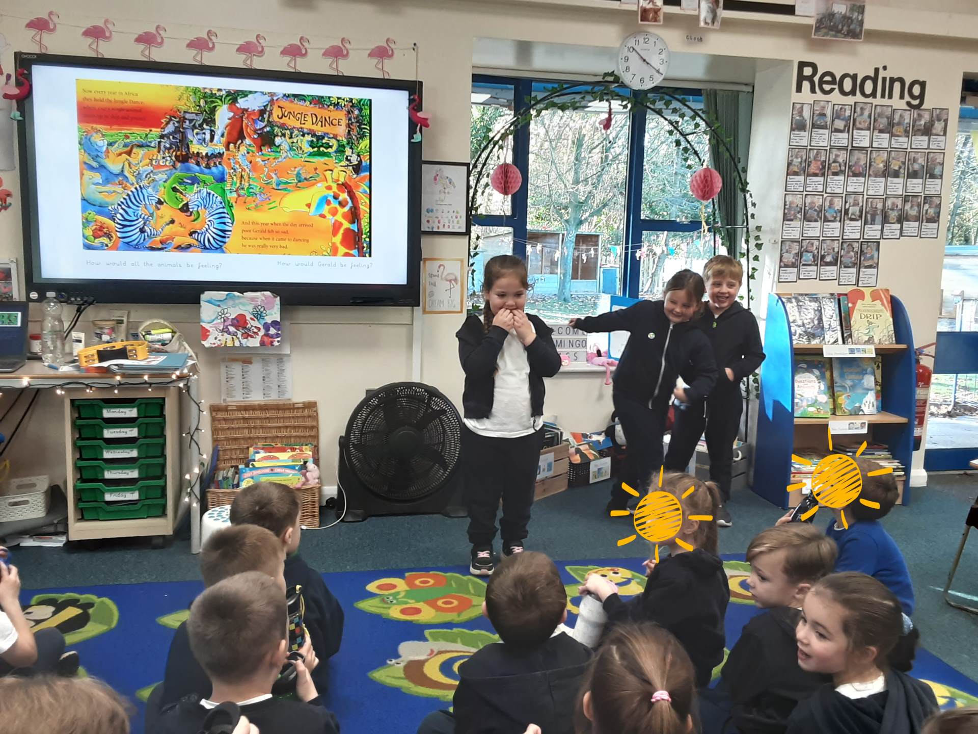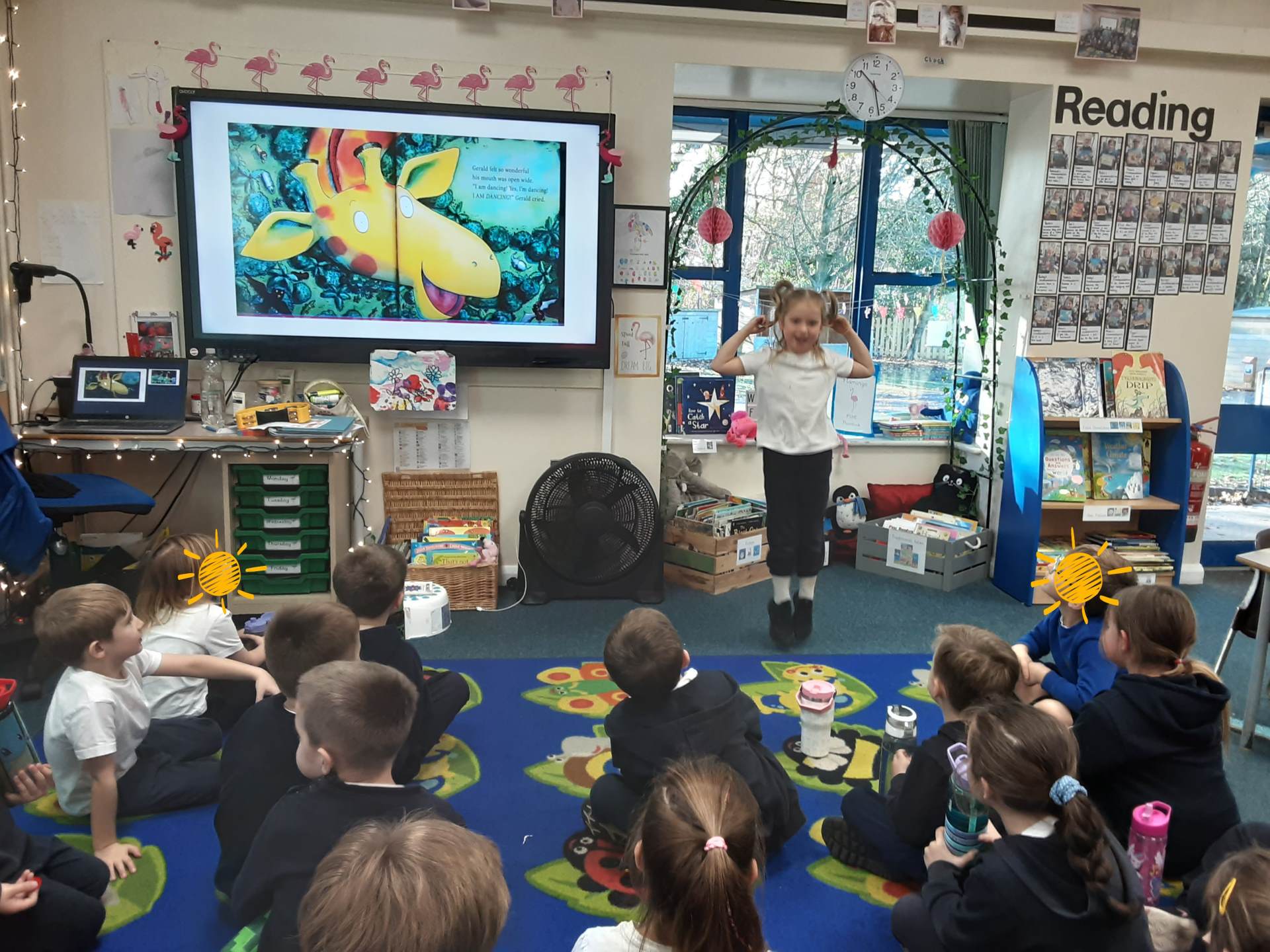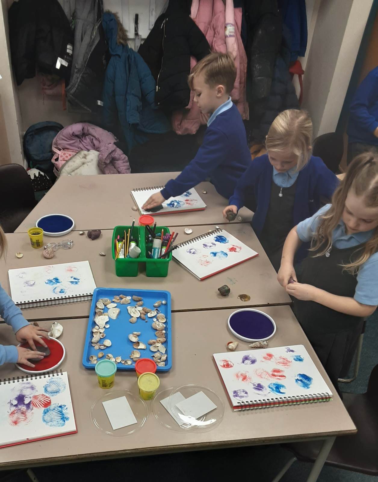 This week we visited Butterfly Class in Year 2, where they shared their instructions for making a “disgusting sandwich.” Our class listened carefully and thoroughly enjoyed the experience. In English, we brought Giraffes Can’t Dance to life through drama. The whole class took part in acting out the scenes, and volunteers then stepped forward to perform each one for their classmates. Finally, in Art the children explored printing techniques using plasticine and real shells. They enjoyed experimenting with different textures and patterns and produced some beautiful shell-inspired prints.