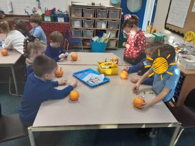 This week in Computing, the children learned that an algorithm is a set of clear instructions. They put this into practice by carefully following step-by-step instructions to cut out and assemble a Mr Potato Head, showing excellent listening skills. The children then had great fun programming a Bee-Bot, giving it simple instructions to help it move to a chosen destination.