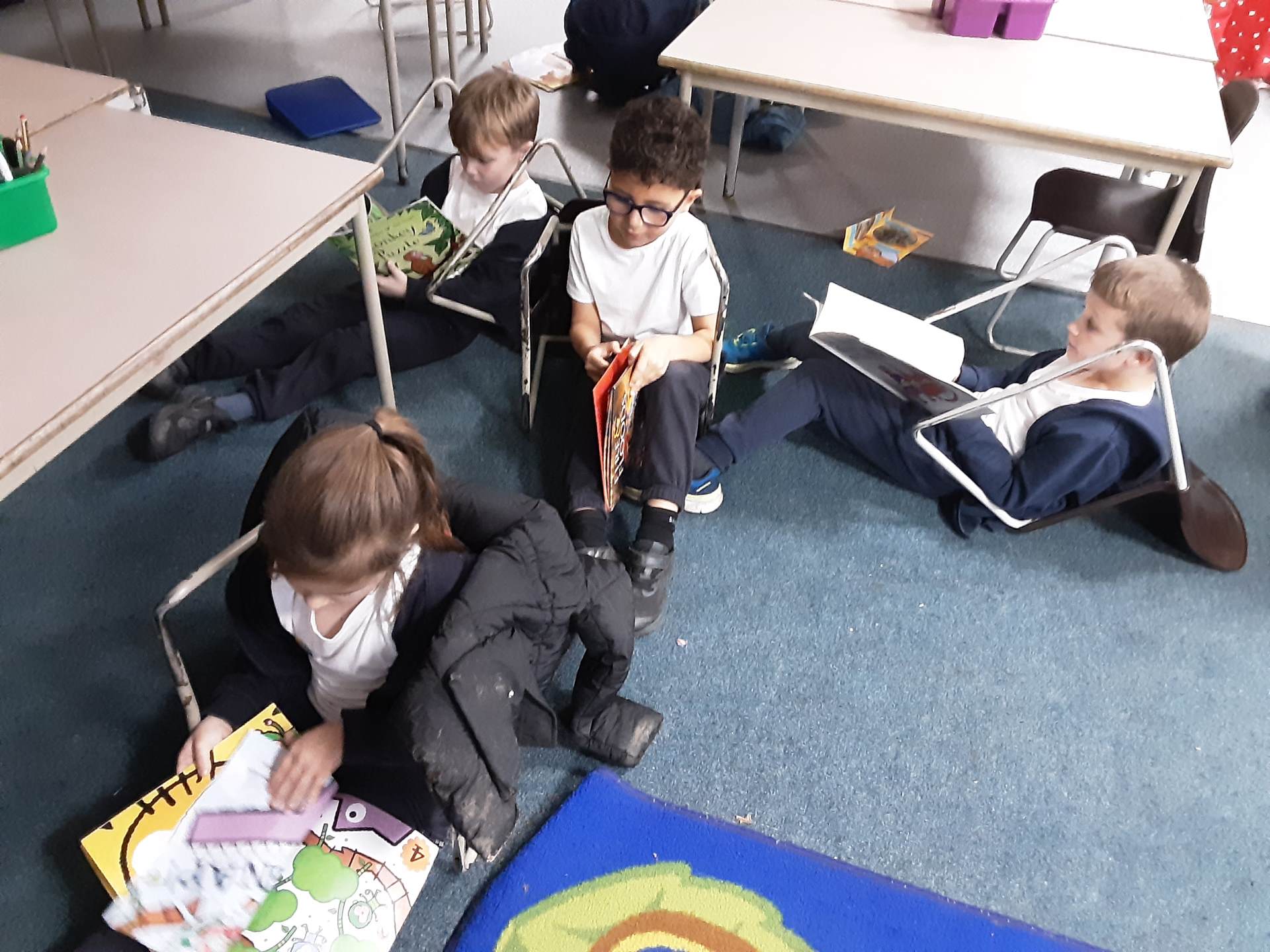 We also enjoyed some relaxing DEAR time (Drop Everything And Read). The children chose a good book, found a comfy spot, and settled down to enjoy some quiet reading time together.