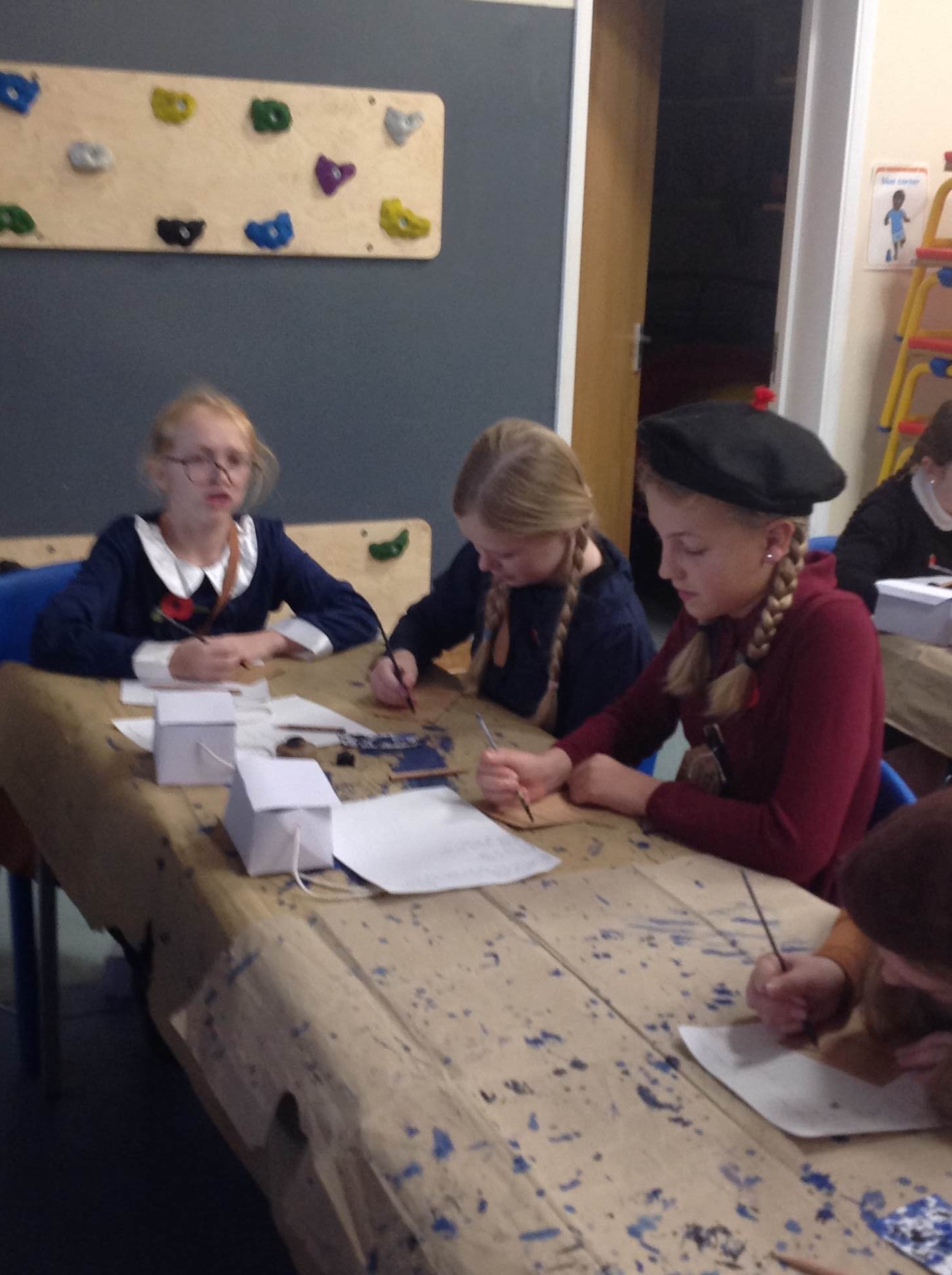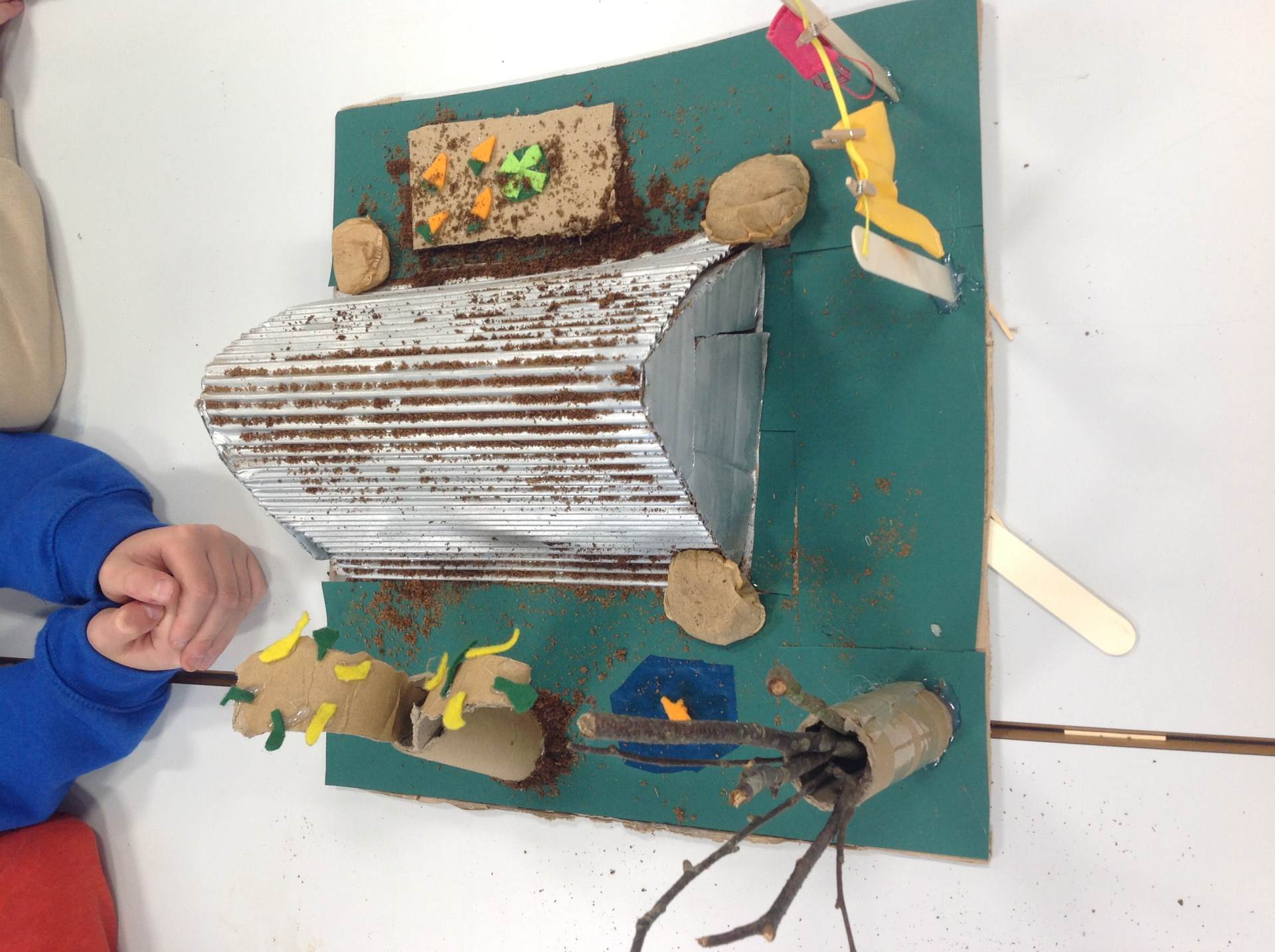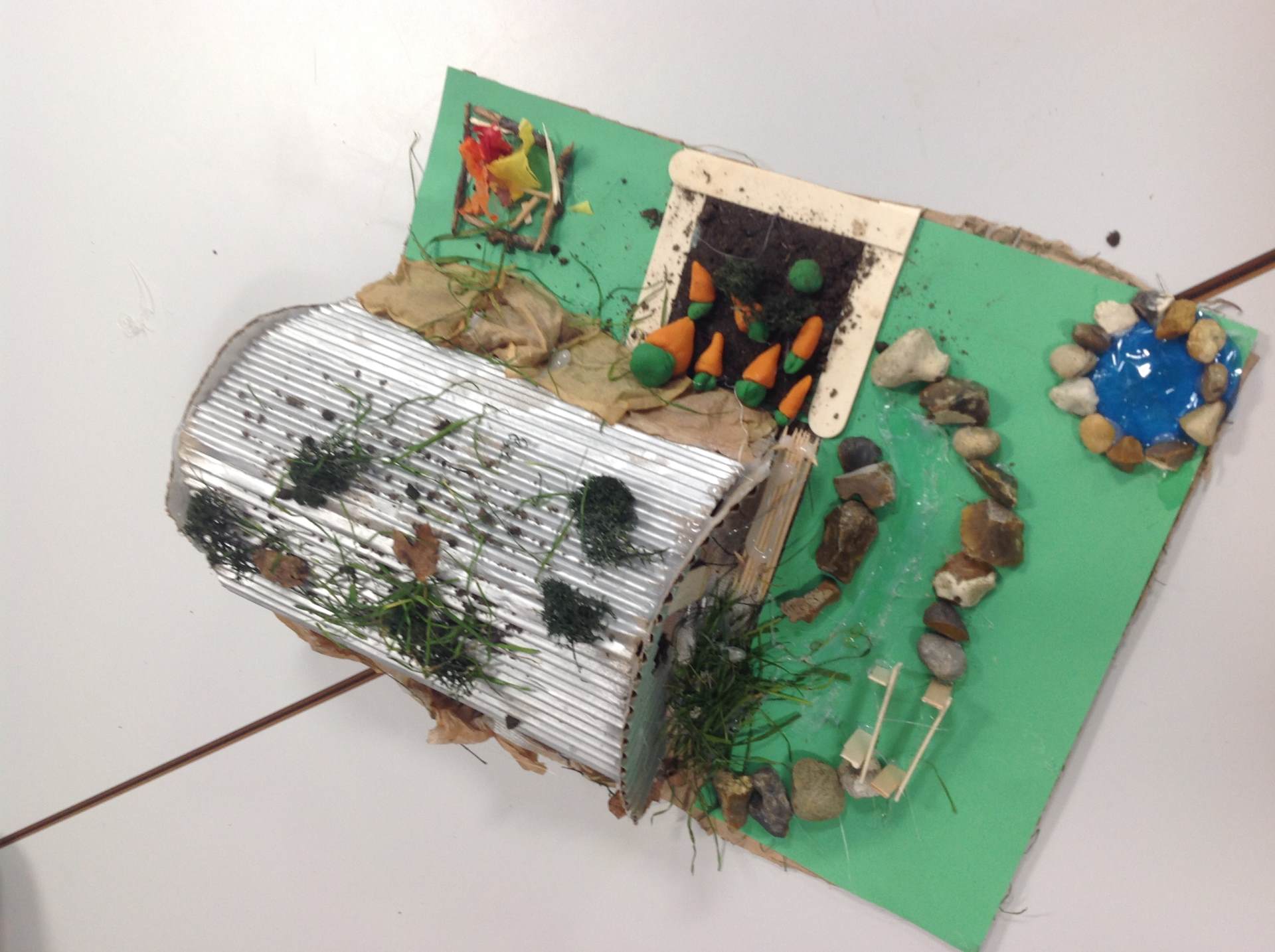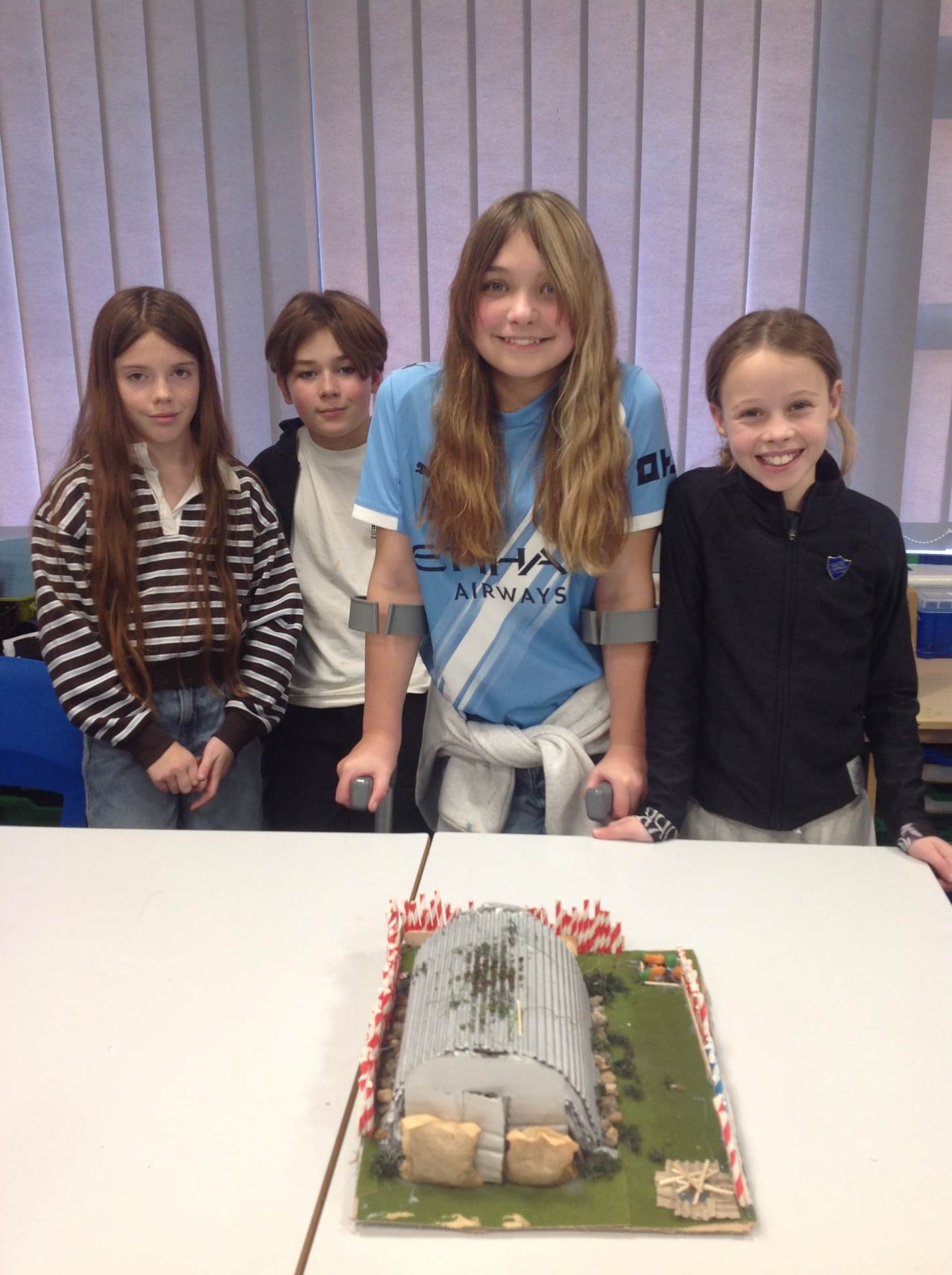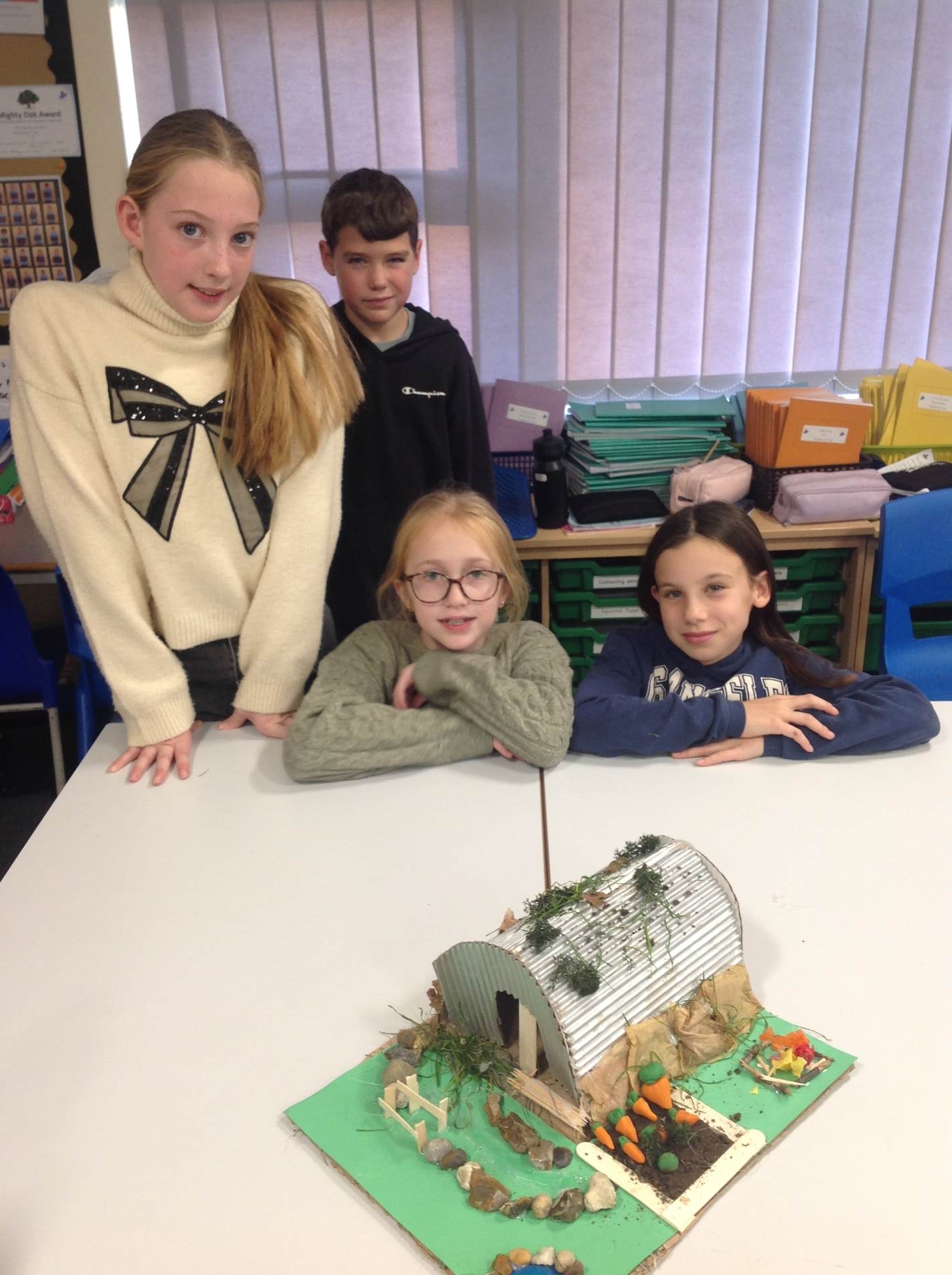 This week we have completed our Anderson shelters. Working in teams, we created our Arch, used corrugated card to create the shelter and finished off the garden aesthetics.