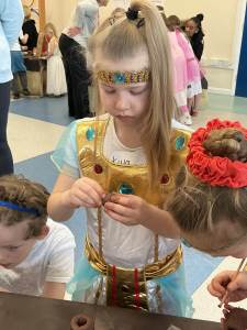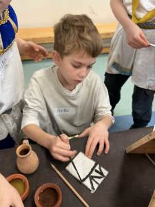 Children immersed themselves in Viking life through a range of hands-on activities. They created paint from natural pigments, designed coins and runes, tried their hand at weaving, and even made their own candles.