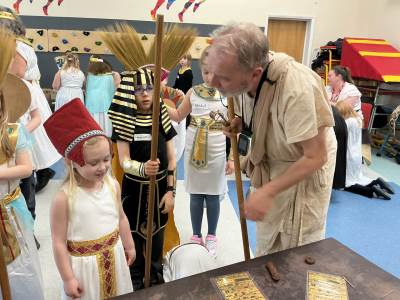 Year 3 were immersed in history as they had a visit from 'History off the Page' who delivered a fantastic Ancient Egyptian Day. In the morning, pupils completed tasks and skills as if they were in an Egyptian town. Some of the items they created included were; mummification, canopic jars, carving, tomb painting, ink making and writing, amulet making, bread making, perfume cone making and shabti dolls. I'm pleased to say that no-one was mummified during the course of the day! In the afternoon, the children had a banquet with entertainment such as dancing and acting, with food and wine.