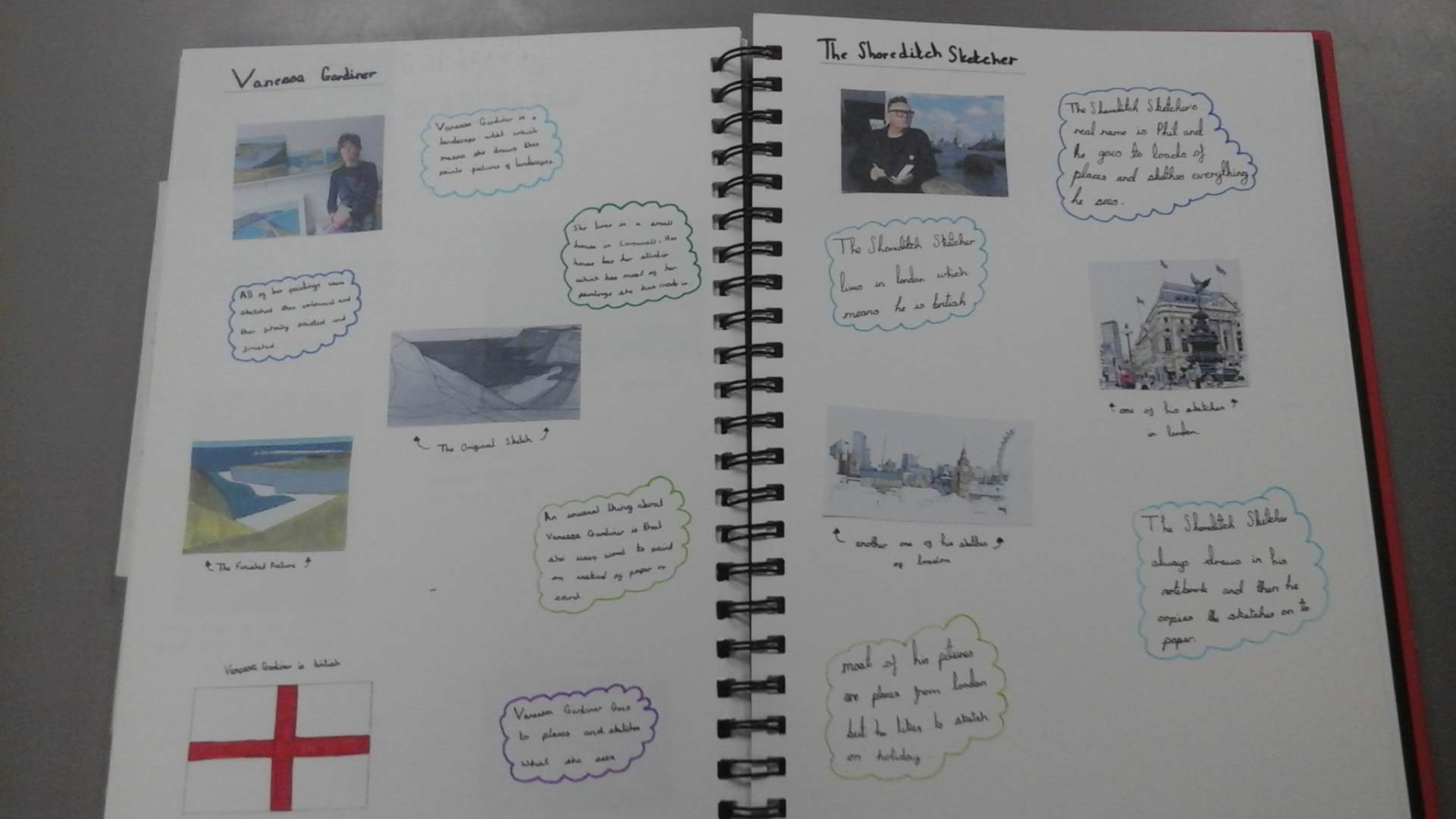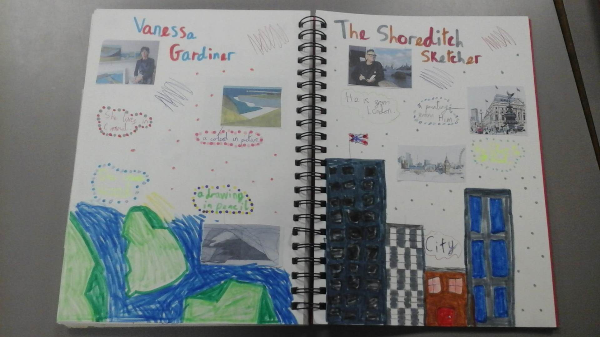 This week, we have started a unit for Art called Mixed Media Land and City. We looked at the artists Vanessa Gardiner and The Shoreditch Sketcher and explored some of their artwork. In our sketchbooks, we produced a page about them.
