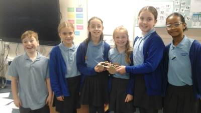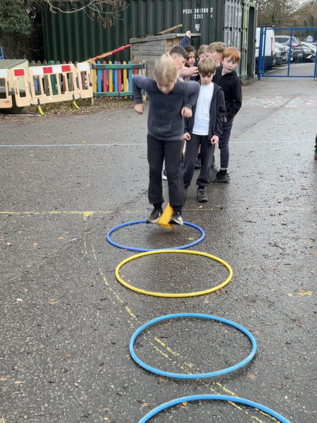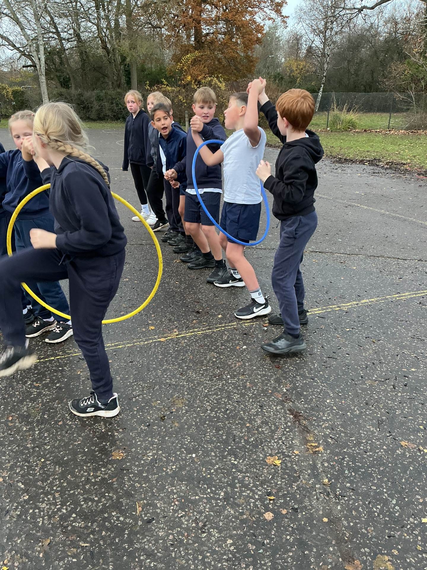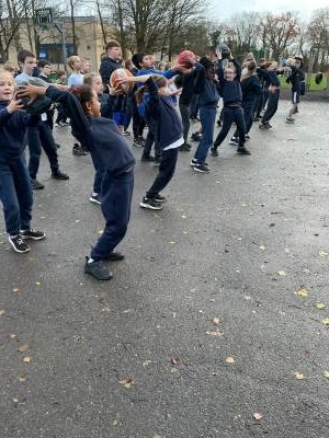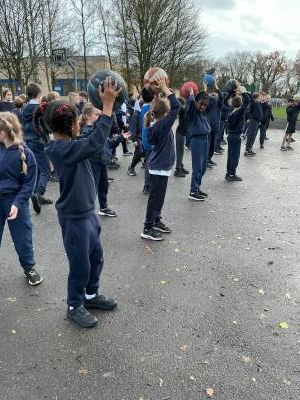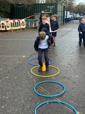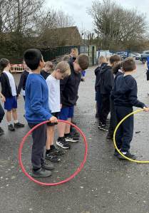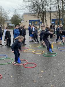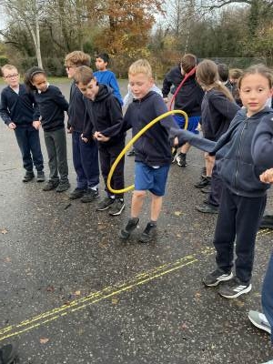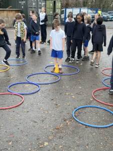 In PE this week, we played a range of team games. We mixed all 3 classes up and got into teams of around 10. We started off with a relay race where we tried to move a cone up and down an obstacle course using only our feet - this proved quite difficult! After this, we had to hold hands in our line and get a hoop from one end to the other without letting go; we were impressed with how easily some groups found this! Then we played the good-old 'over/under' game with a basketball. Finally, we put all these games together in an obstacle course and raced against each other. There was a lot of excitement and it was a very close race at the end!