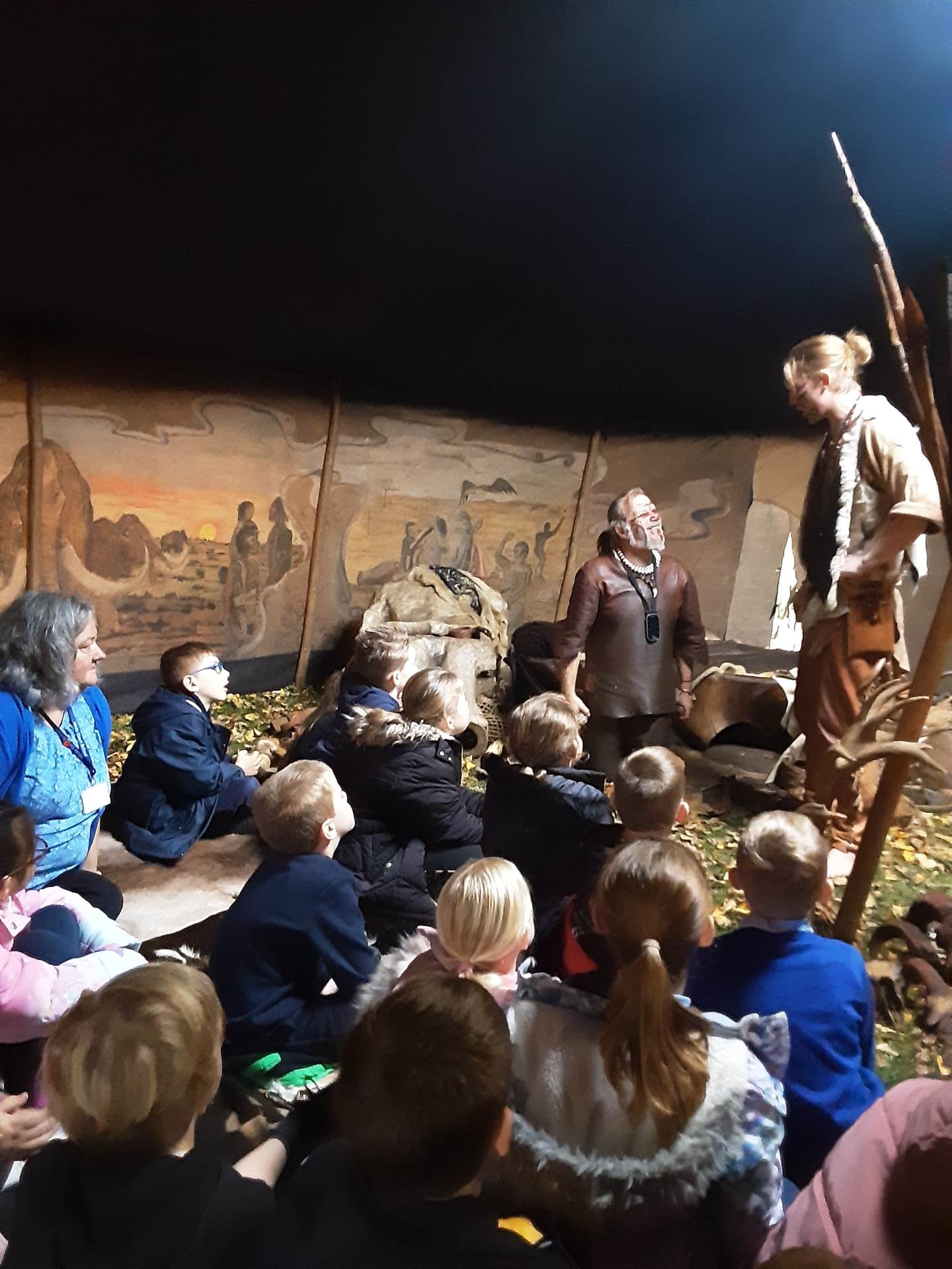 We had an amazing Stone Age Day today. We visited Kit and Twig in their Stone Age tent and were fascinated by all the things they told us. We were able to hold lots of amazing artefacts and look closely at them. We watched them light a fire using stones and natural materials. We learnt so many amazing things.