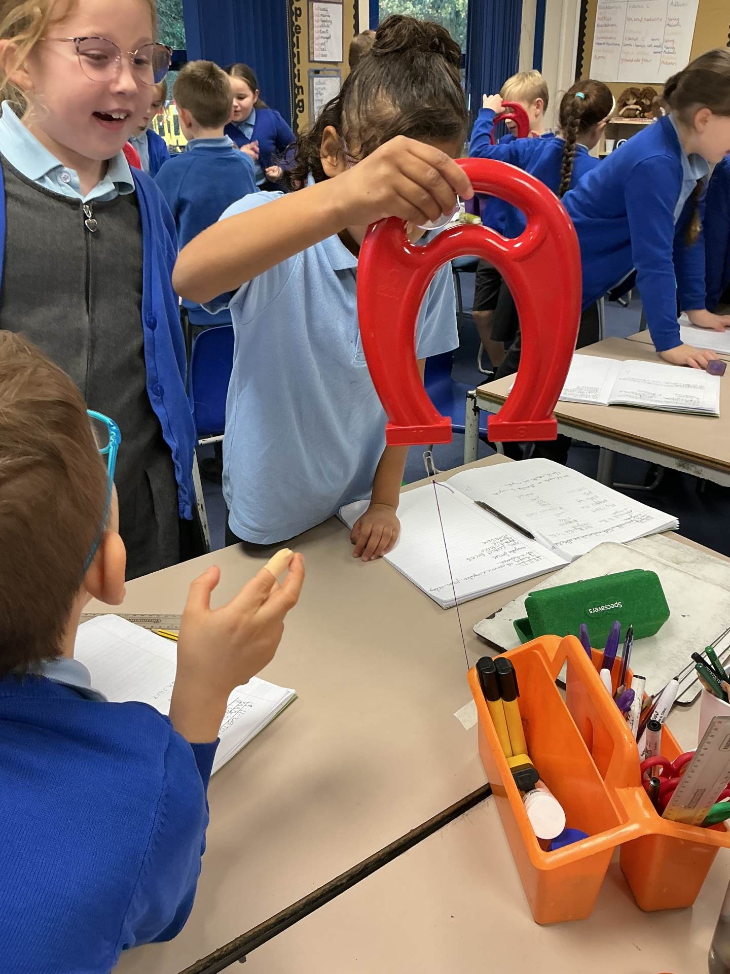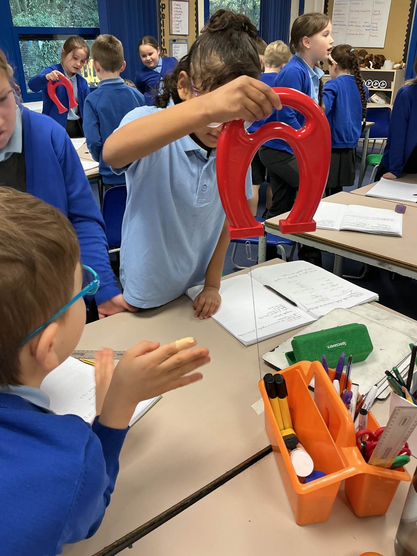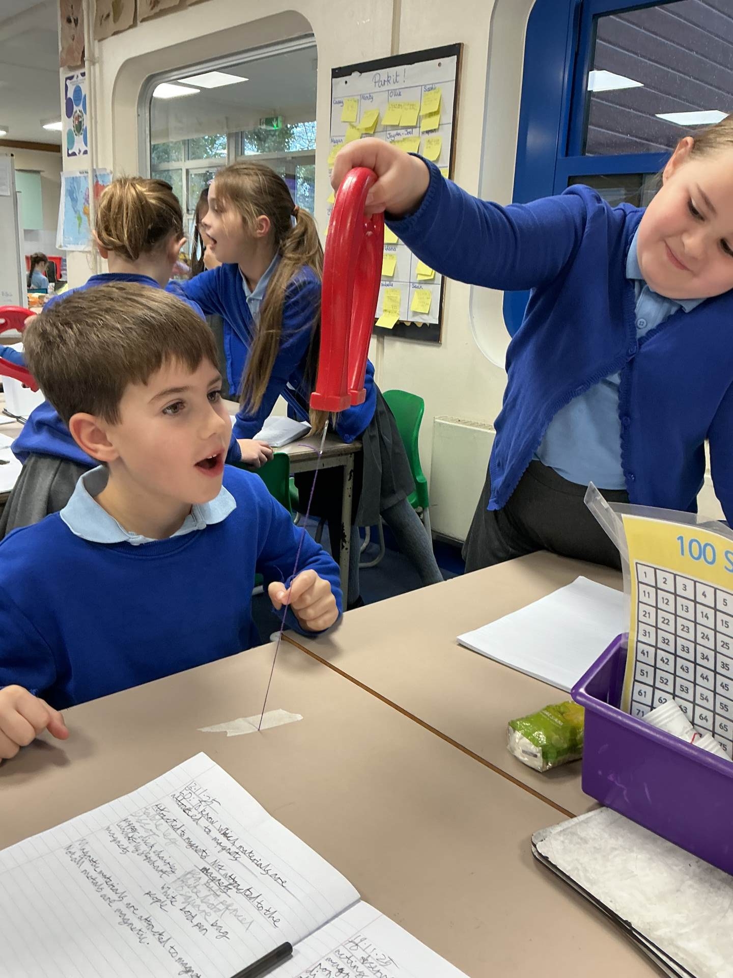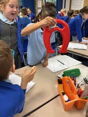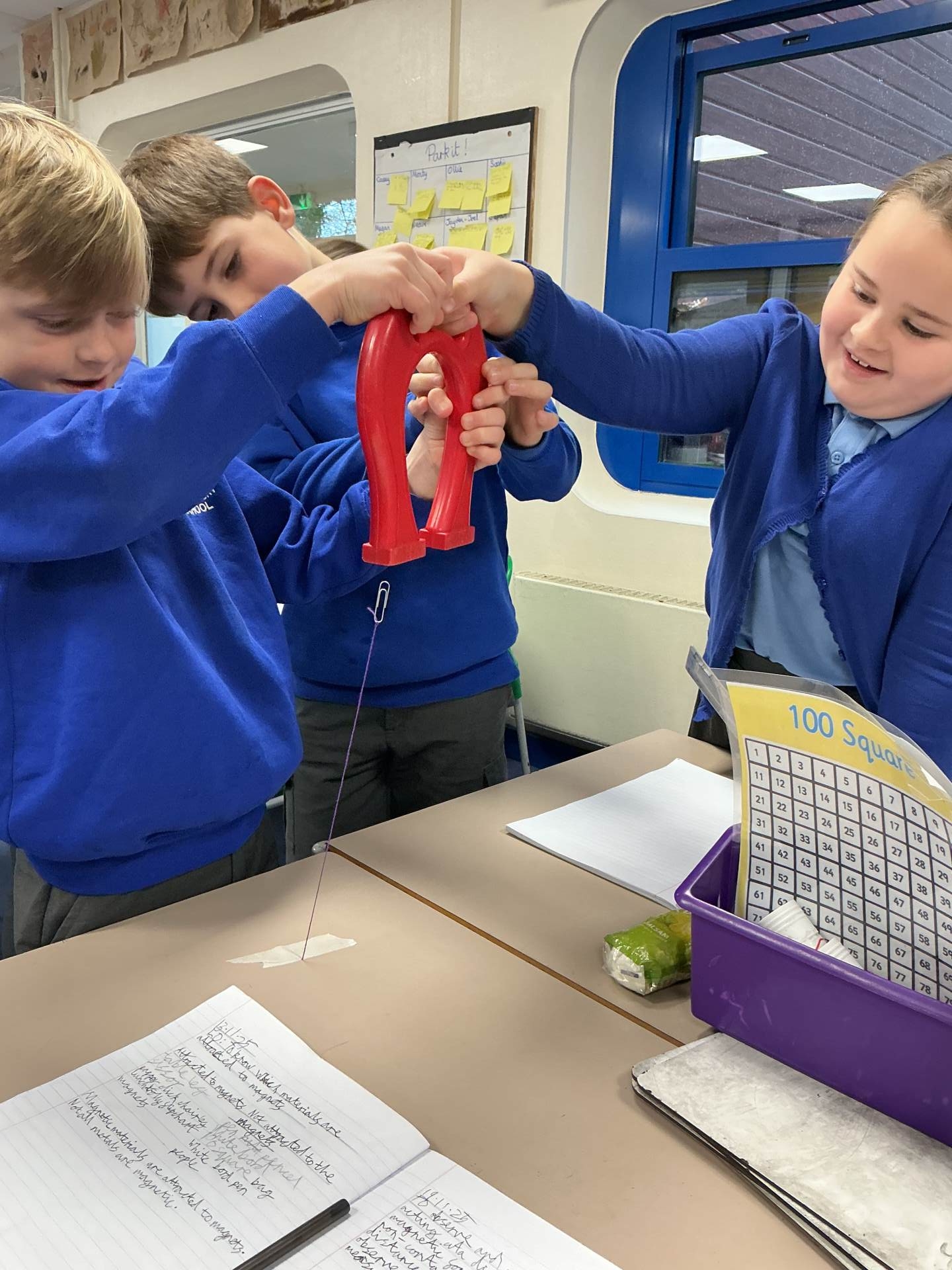 Today in science we investigate non-contact forces . We used a magnet to lift a paperclip which was attached to the table using cotton. We had to see if we could keep it in the air without touching the paperclip. We were amazed to see we could.