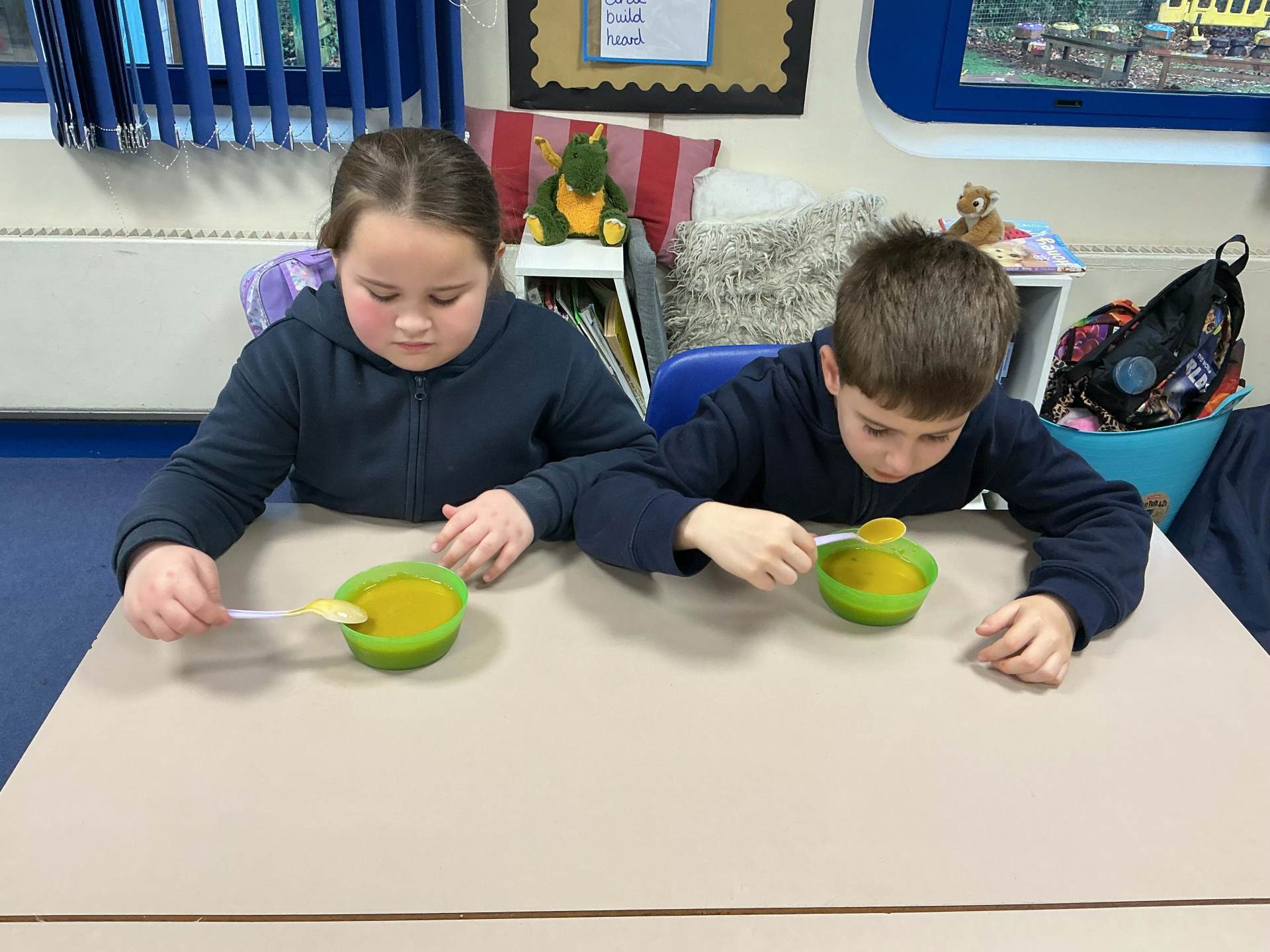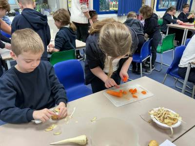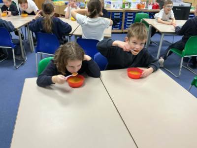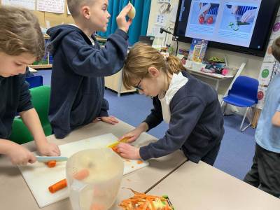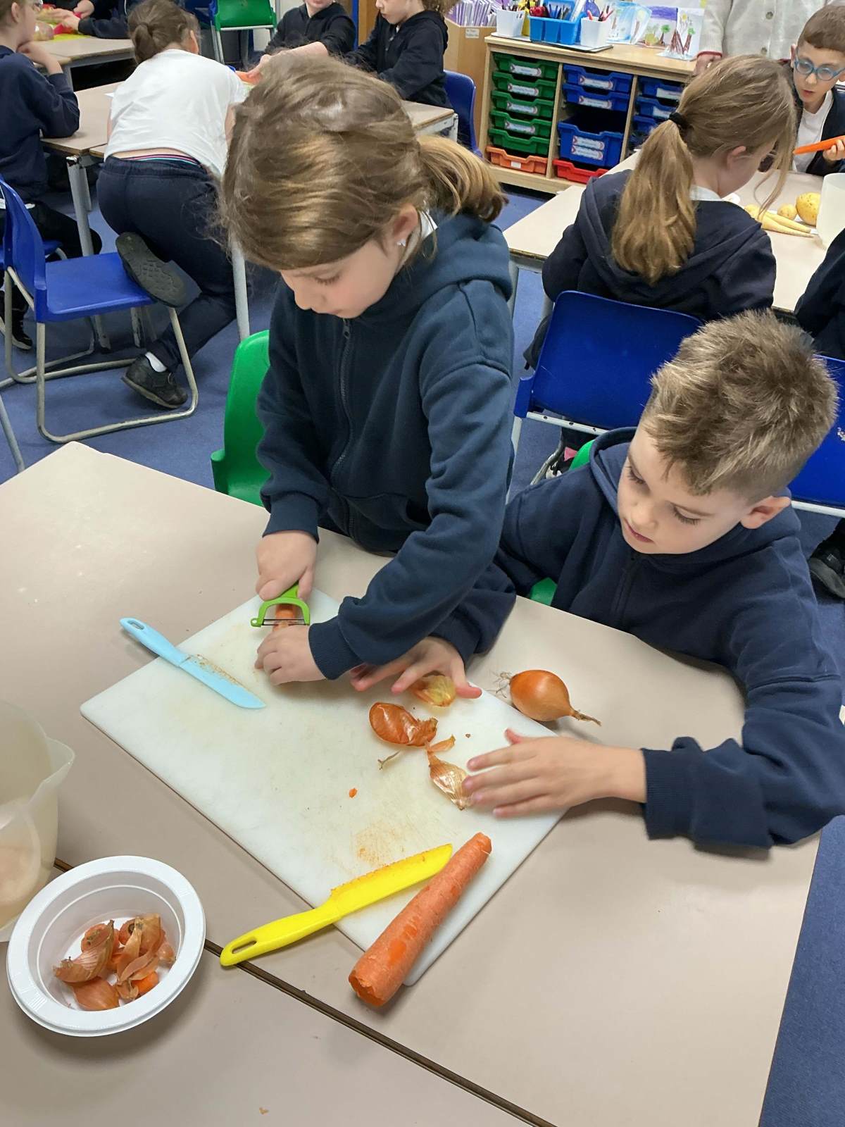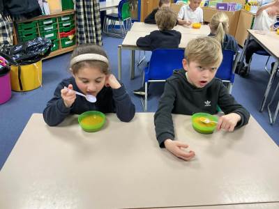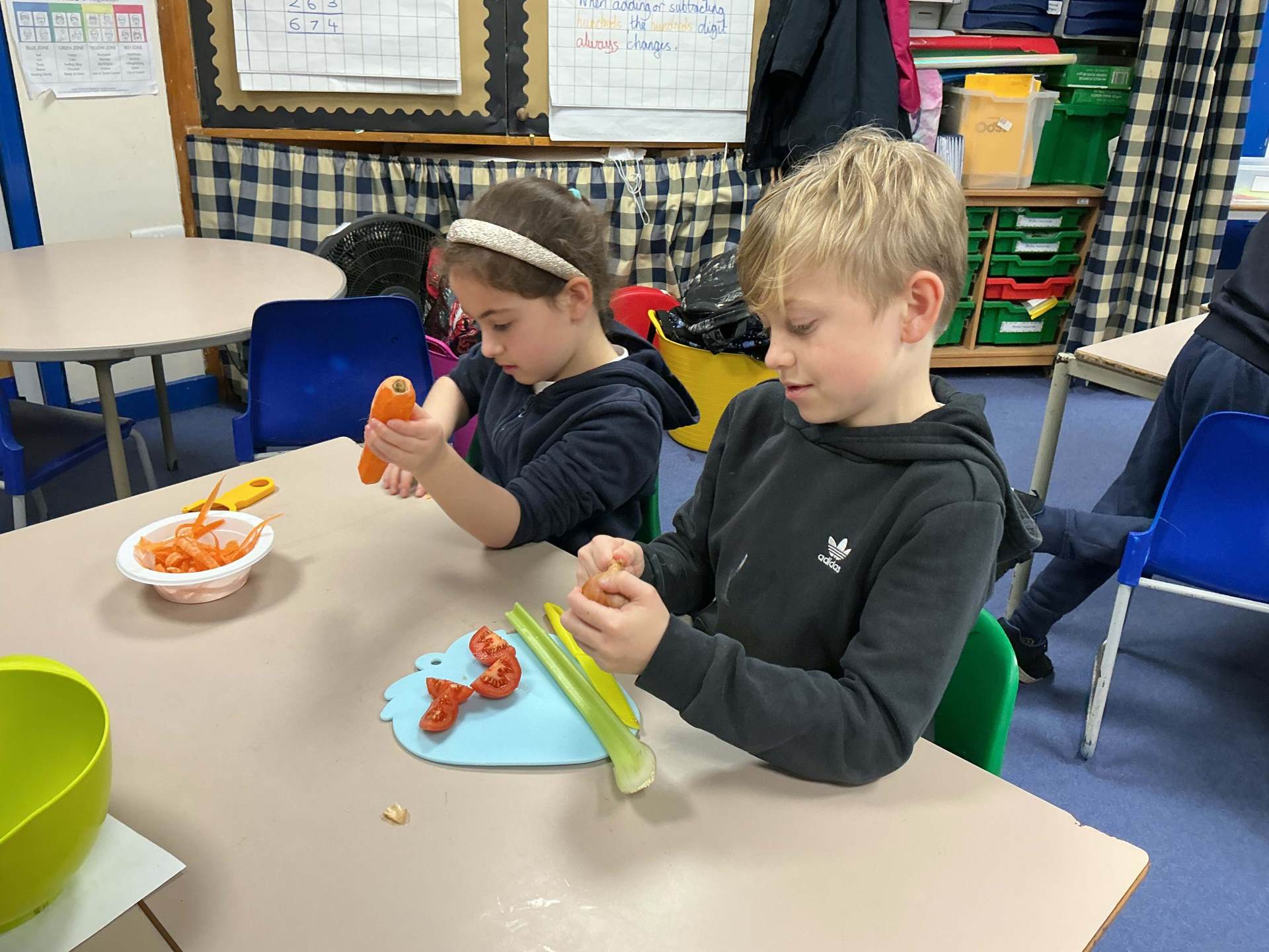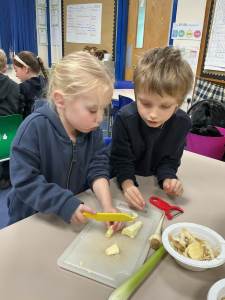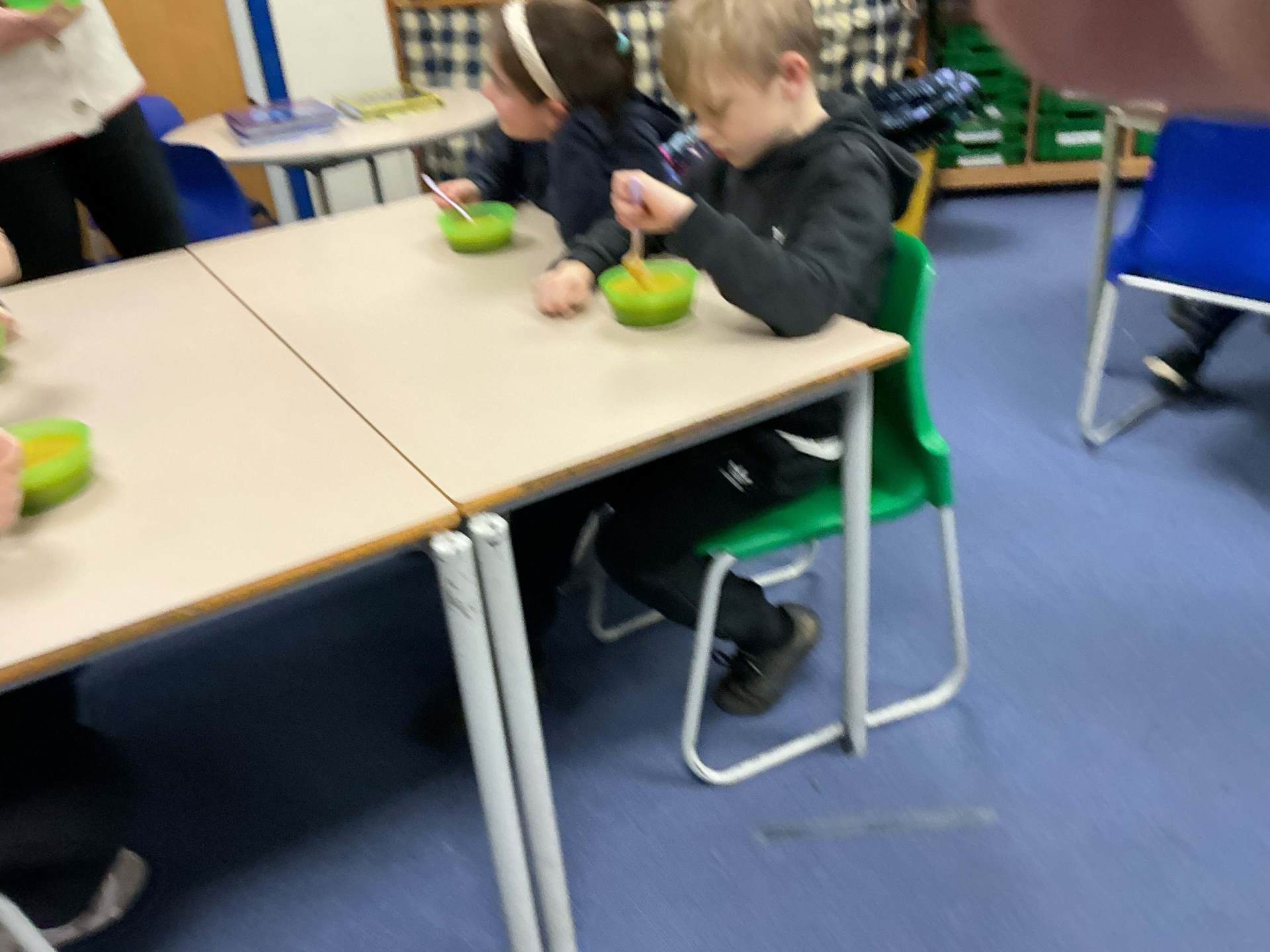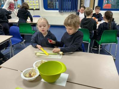 Today we had a fantastic day making Vegetable Soup to our own recipe. We loved practising our skills to peel, chop and mix our own soups. They smelt and tasted so delicious even Mrs Burrell came to join us.