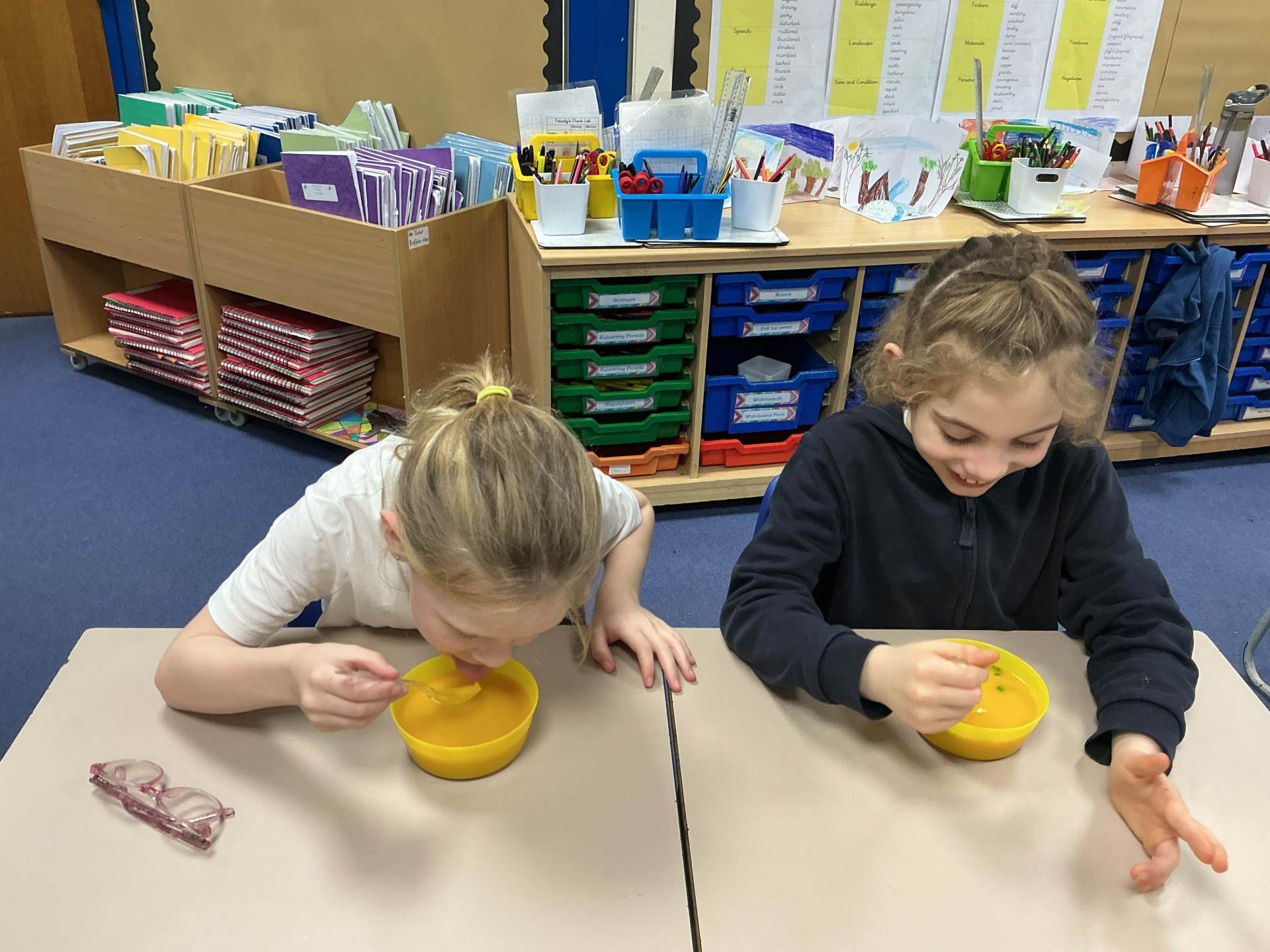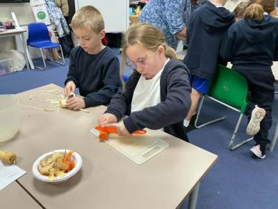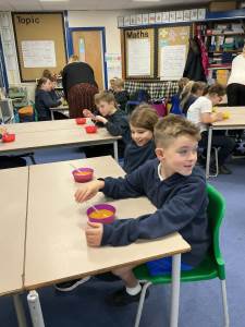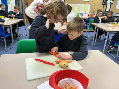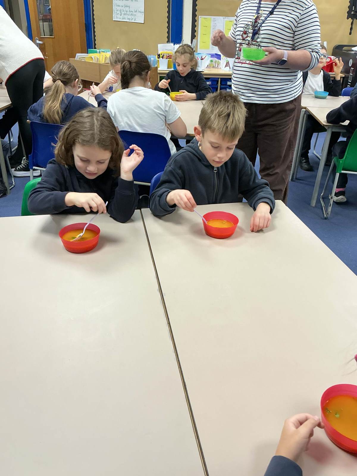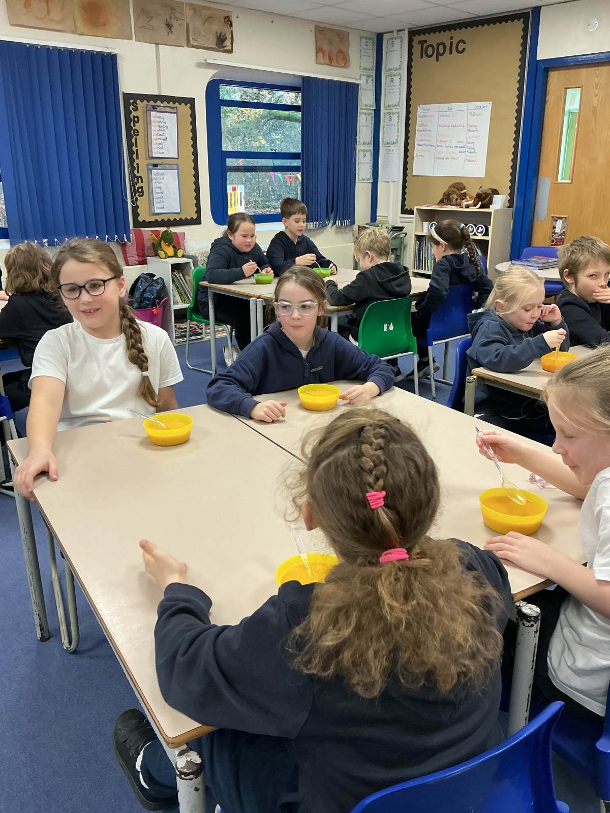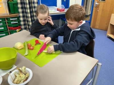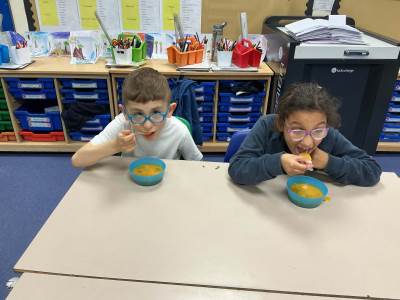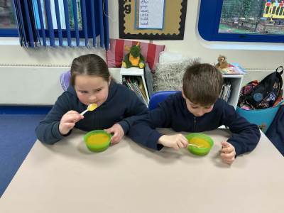 Today we had a fantastic day making Vegetable Soup to our own recipe. We loved practising our skills to peel, chop and mix our own soups. They smelt and tasted so delicious even Mrs Burrell came to join us.