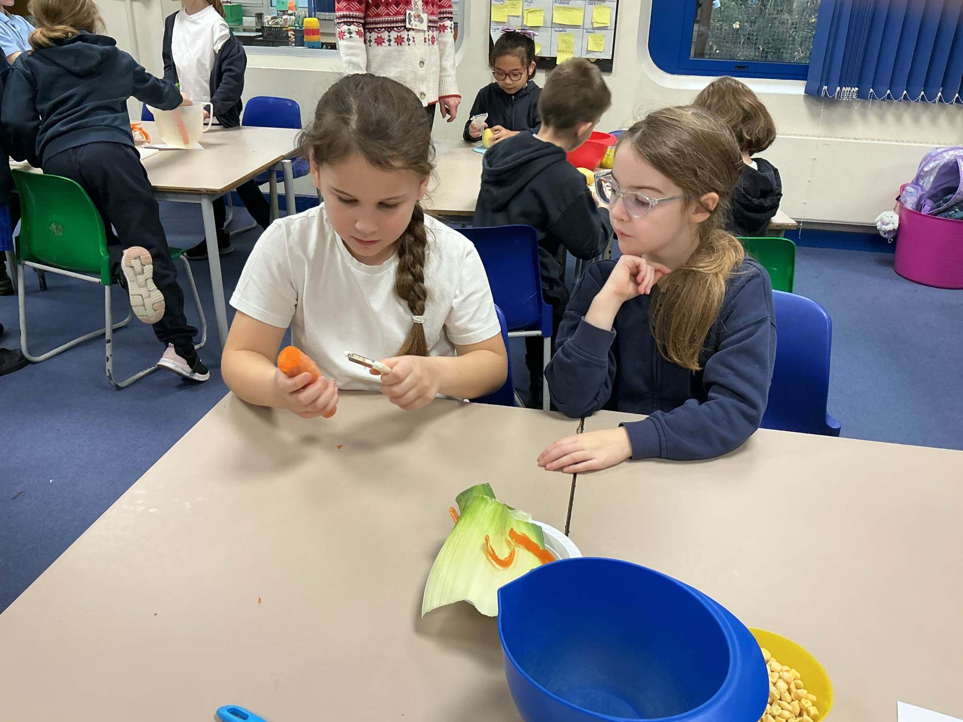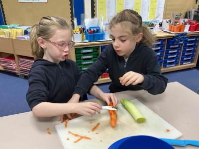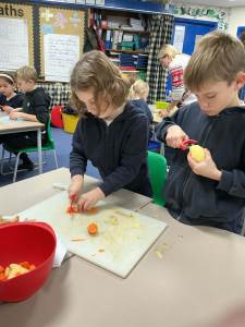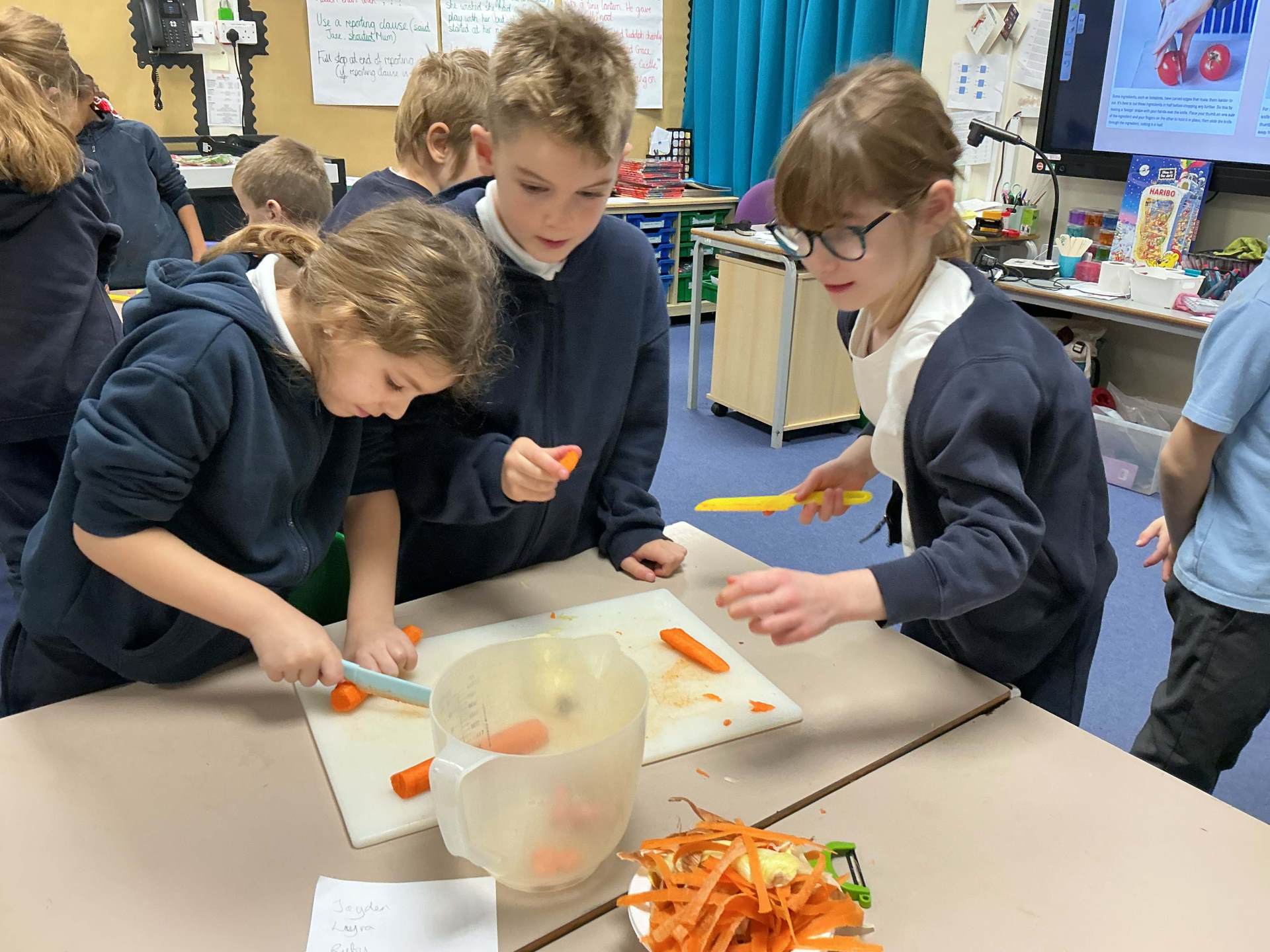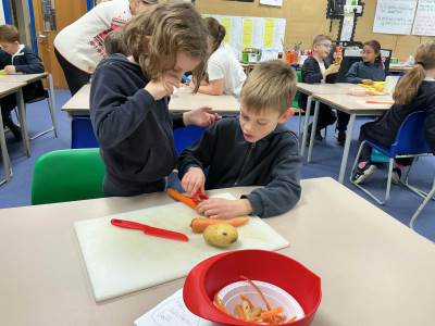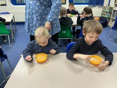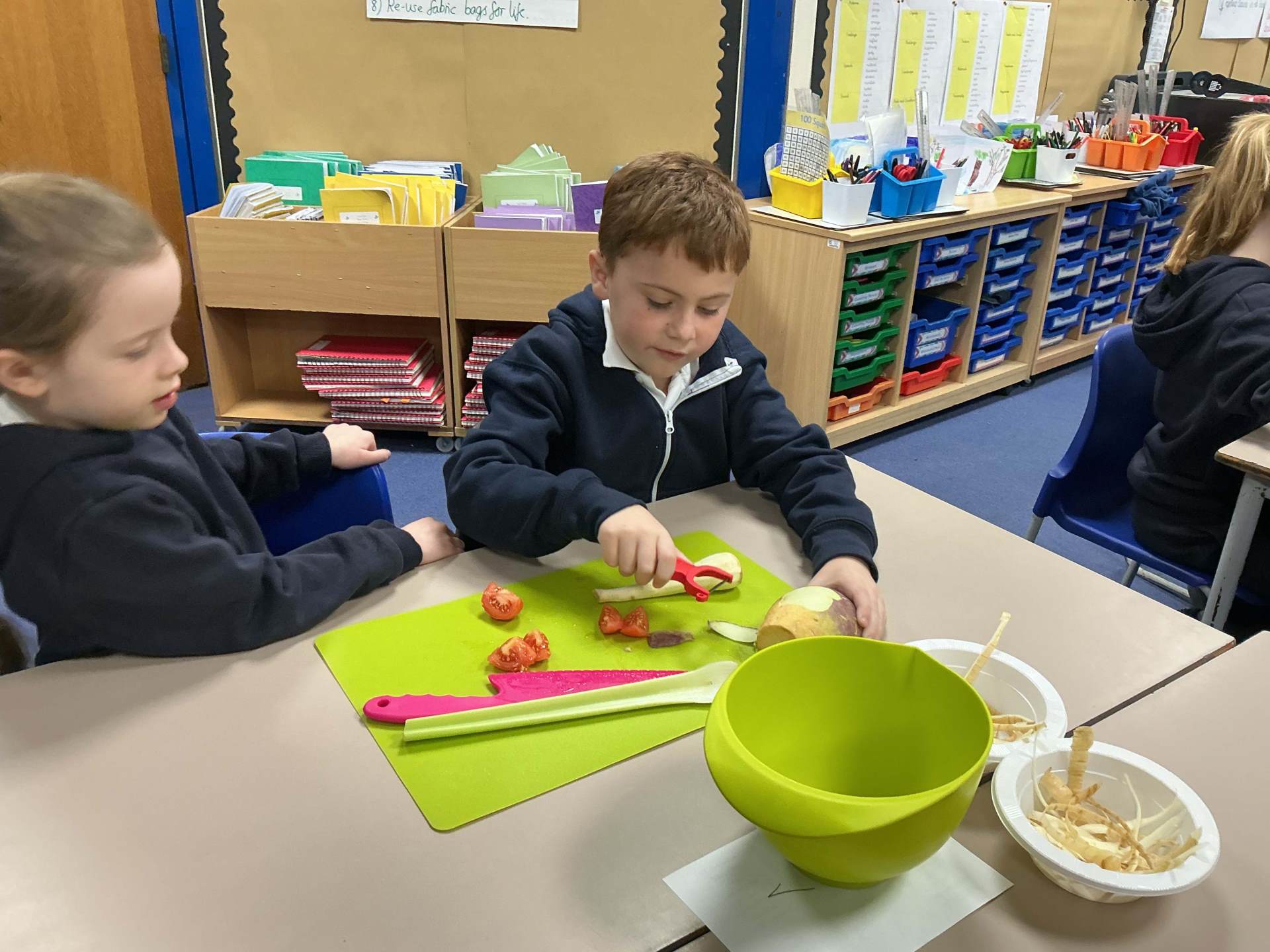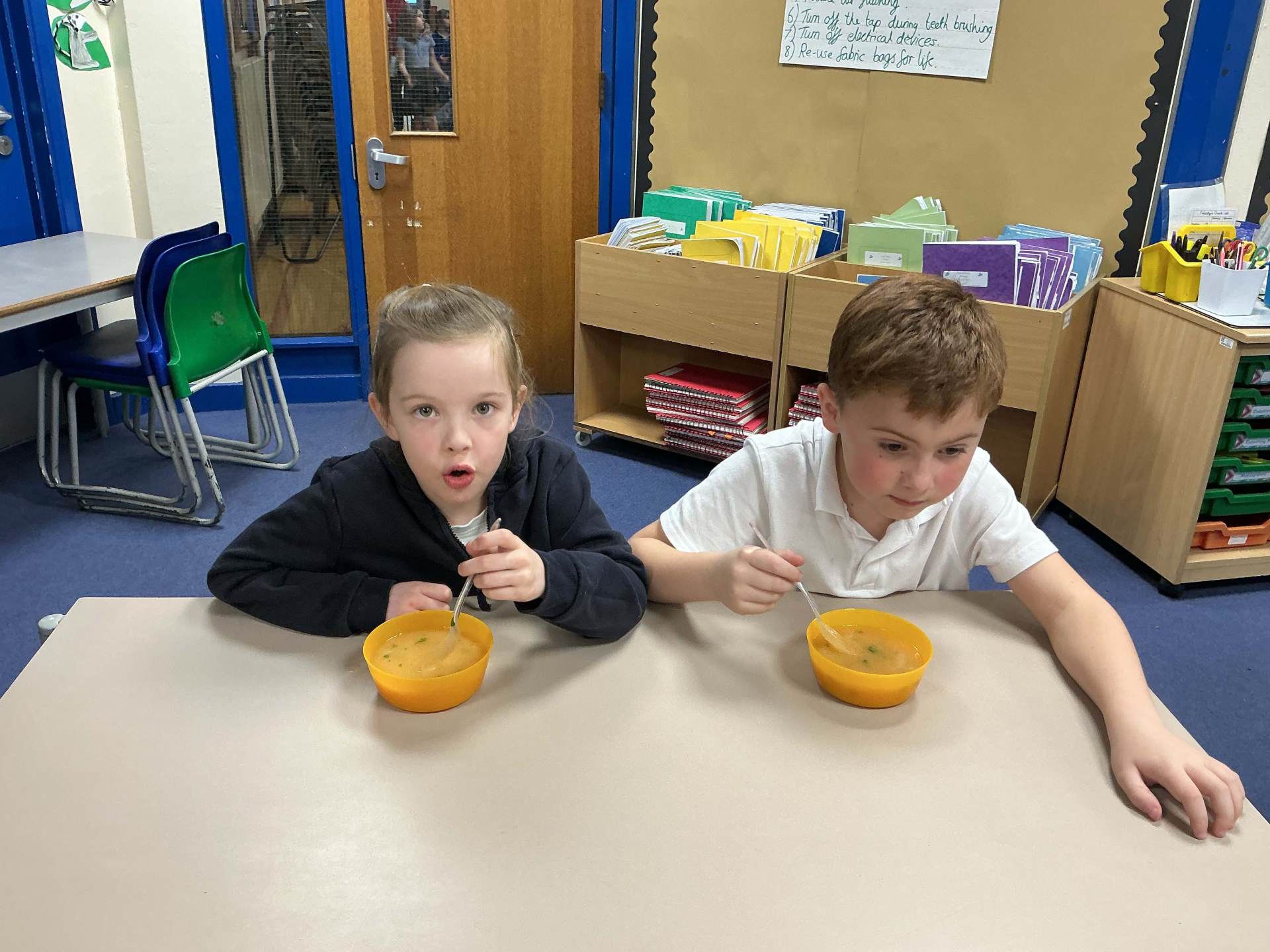 Today we had a fantastic day making Vegetable Soup to our own recipe. We loved practising our skills to peel, chop and mix our own soups. They smelt and tasted so delicious even Mrs Burrell came to join us.