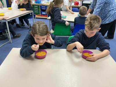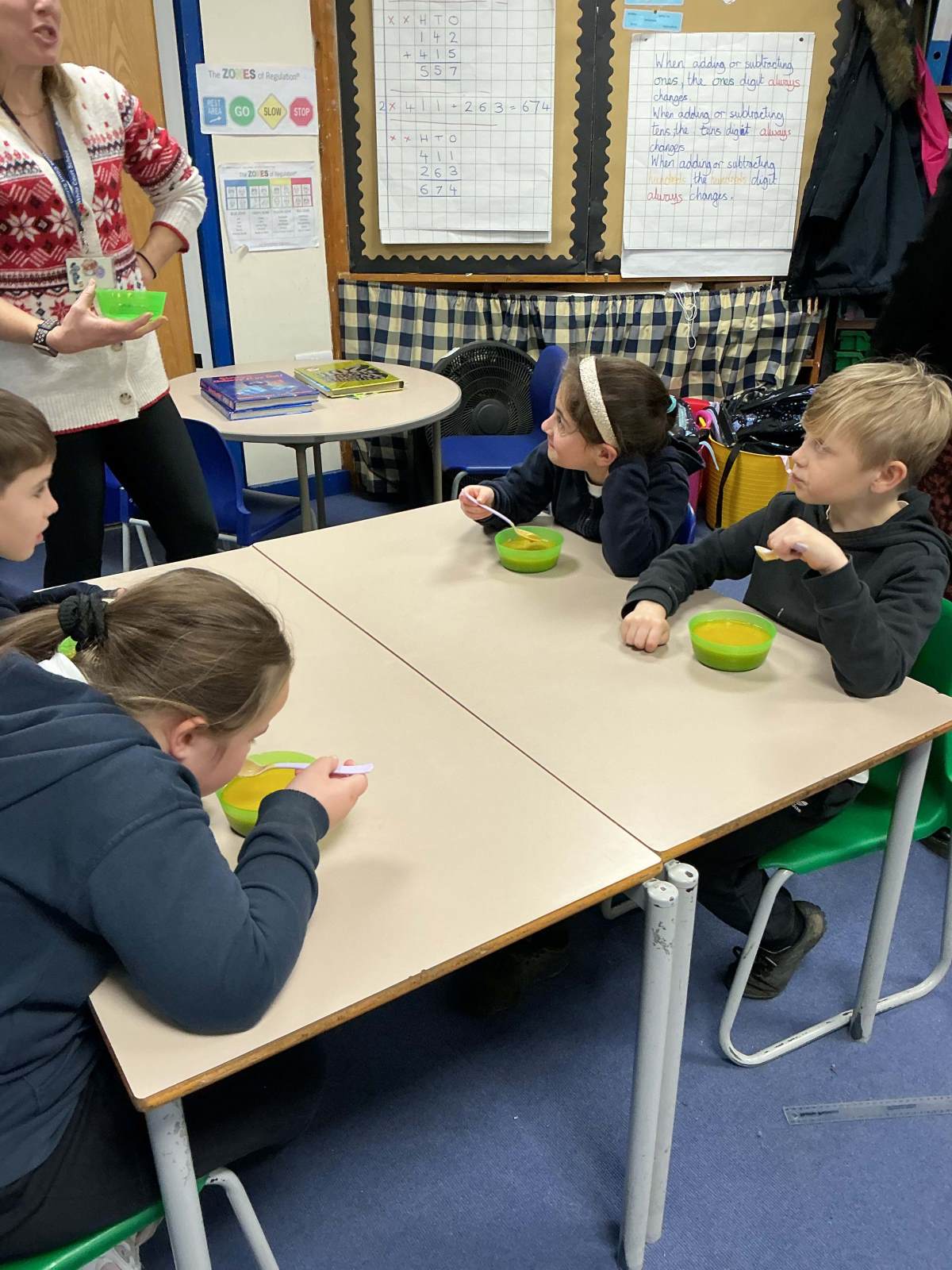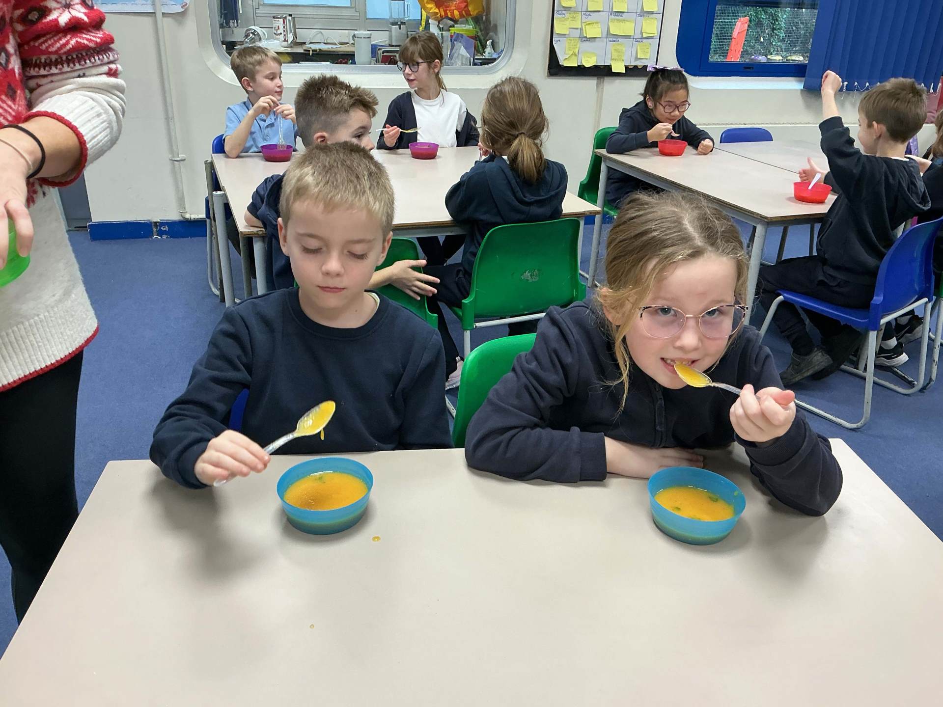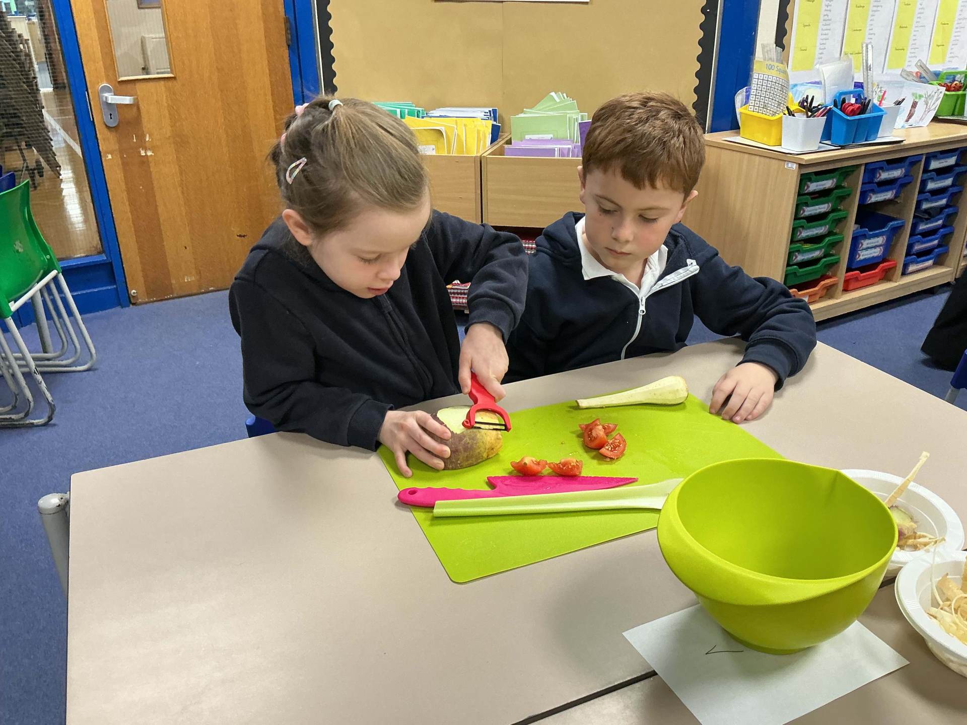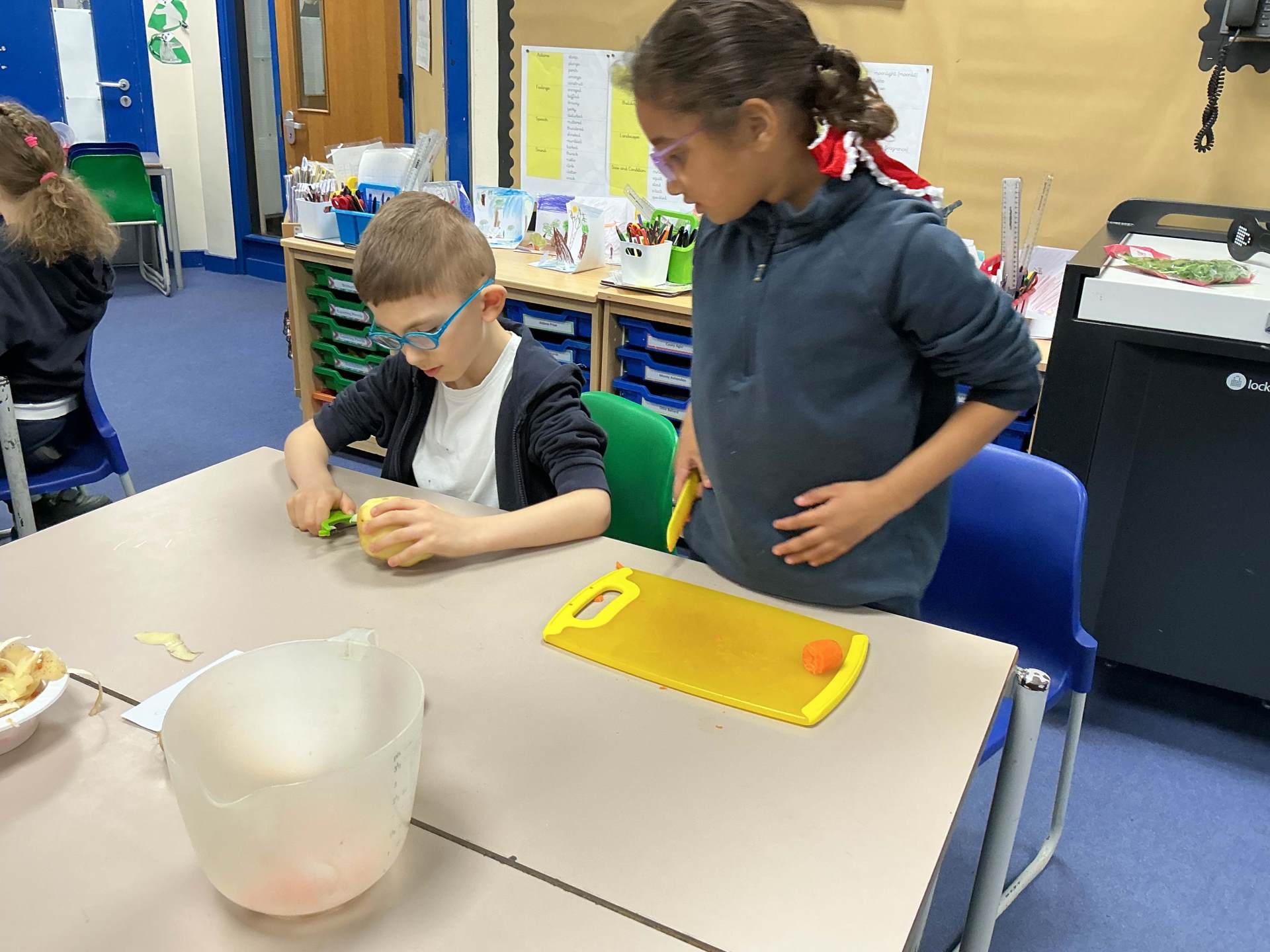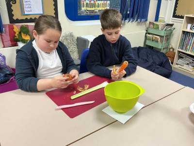 Today we had a fantastic day making Vegetable Soup to our own recipe. We loved practising our skills to peel, chop and mix our own soups. They smelt and tasted so delicious even Mrs Burrell came to join us.