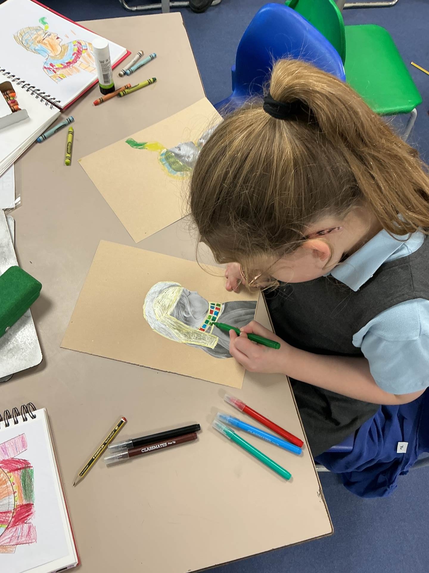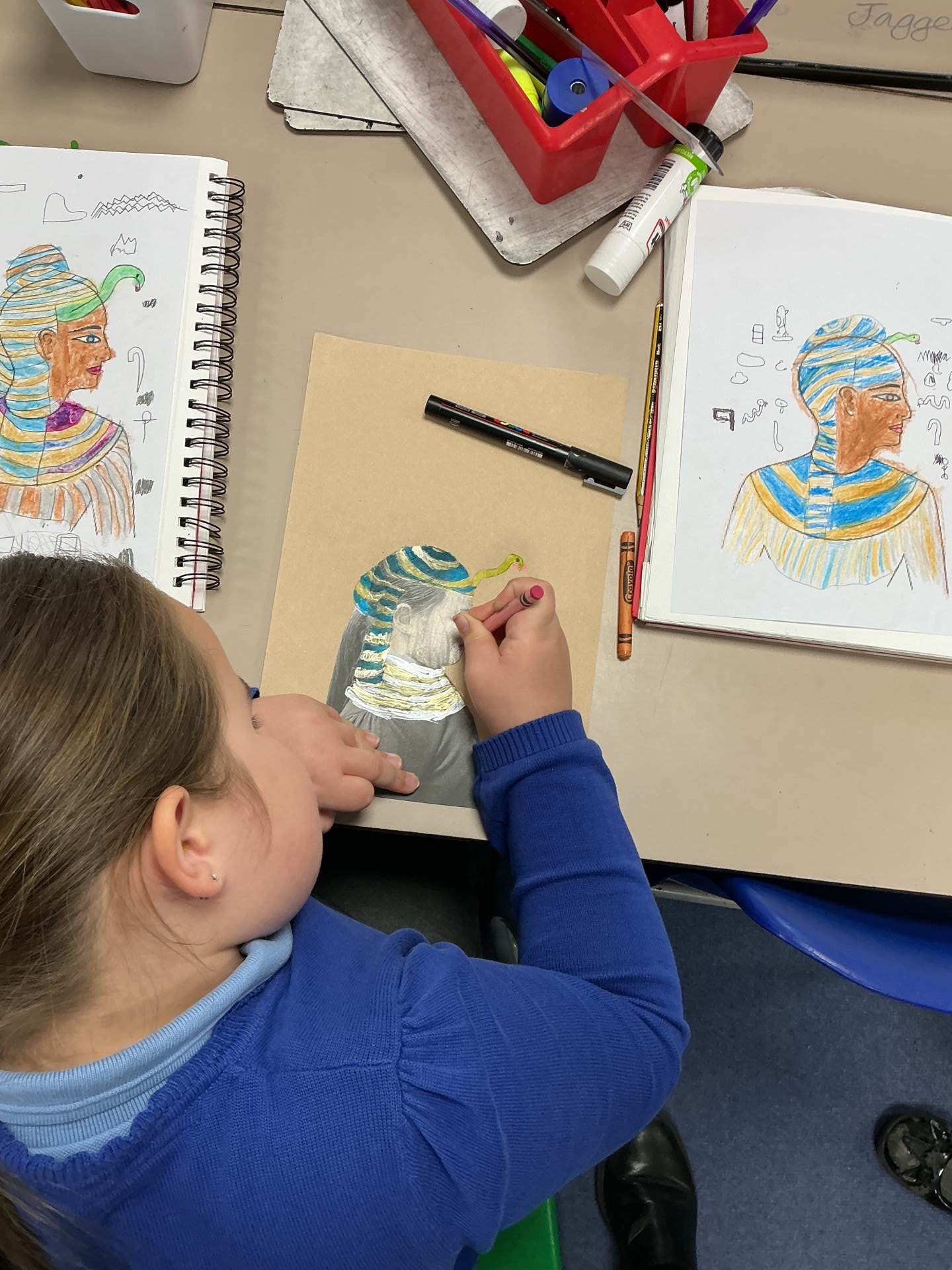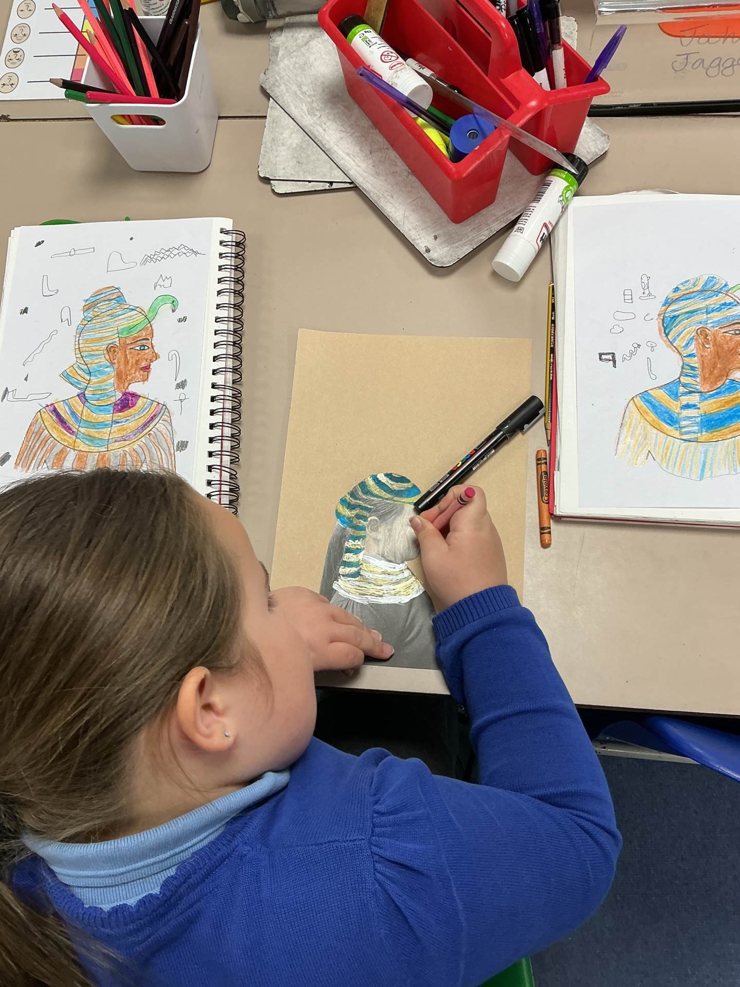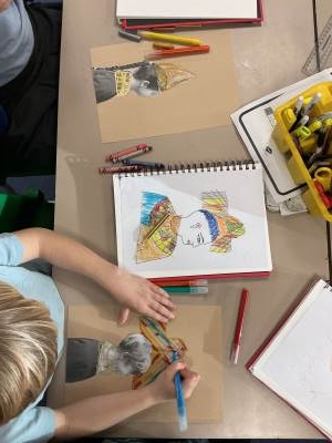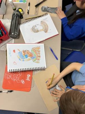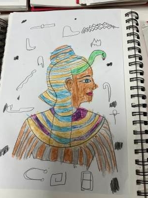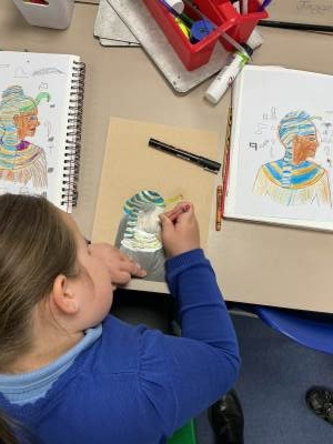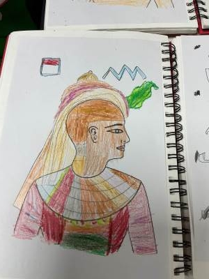 We looked at Ancient Egyptian portraits and created our own plan for an Egyptian side profile portrait.