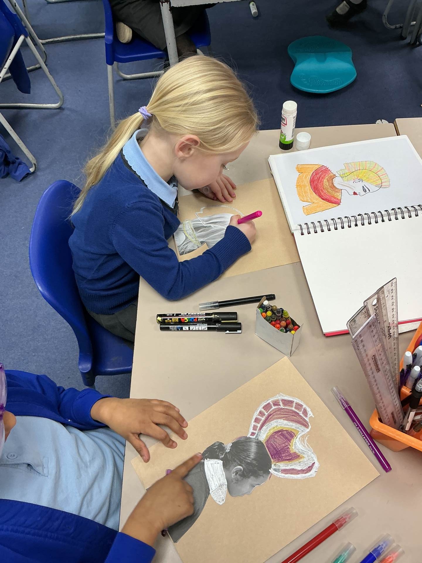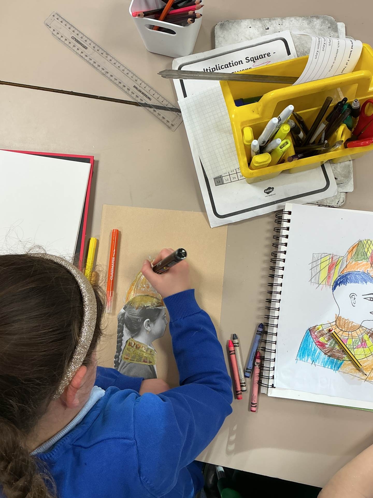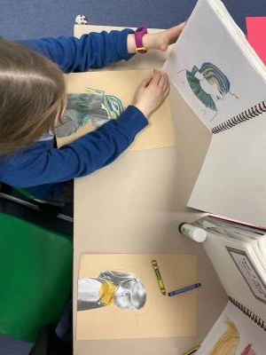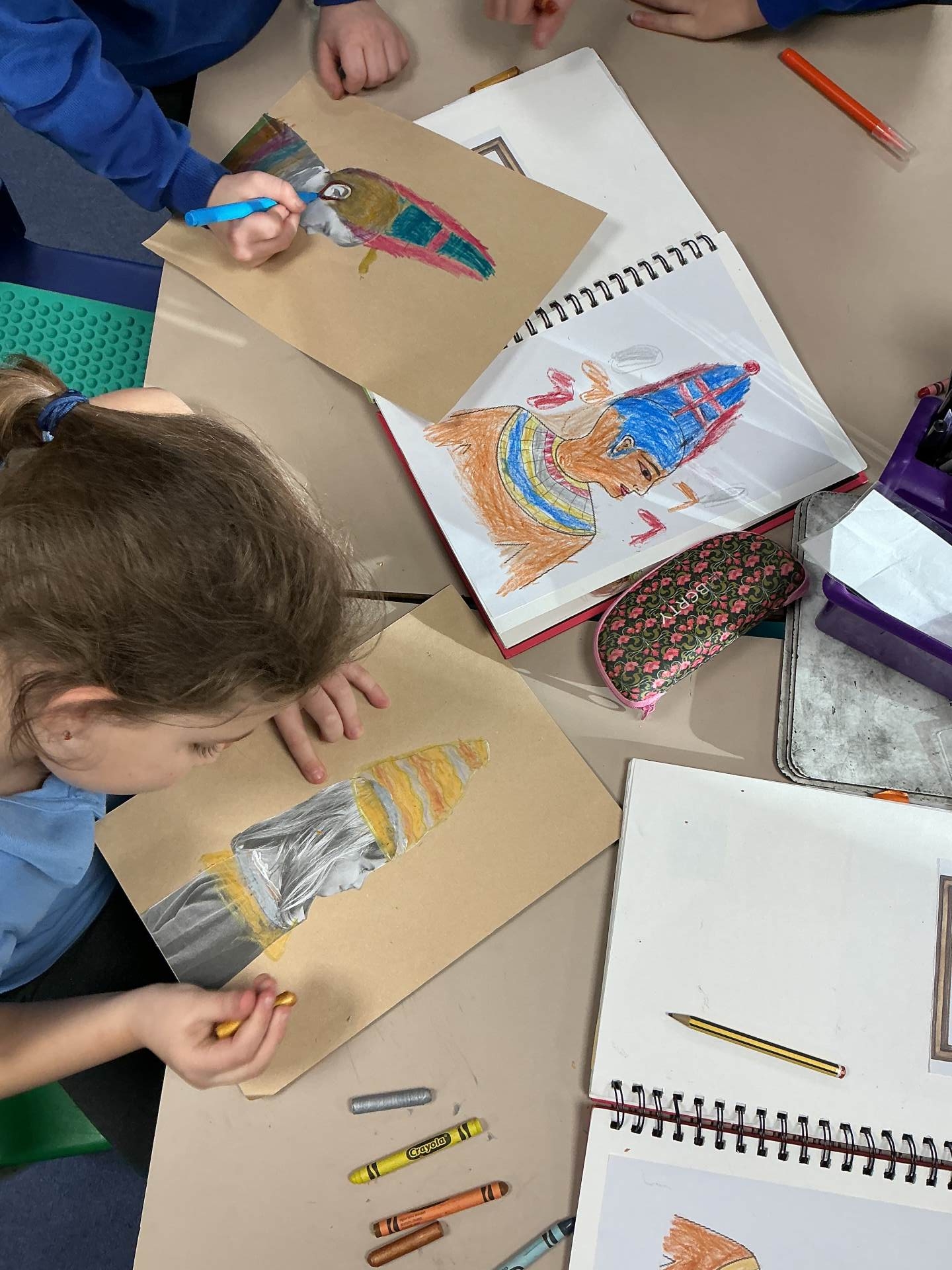 We looked at Ancient Egyptian portraits and created our own plan for an Egyptian side profile portrait.