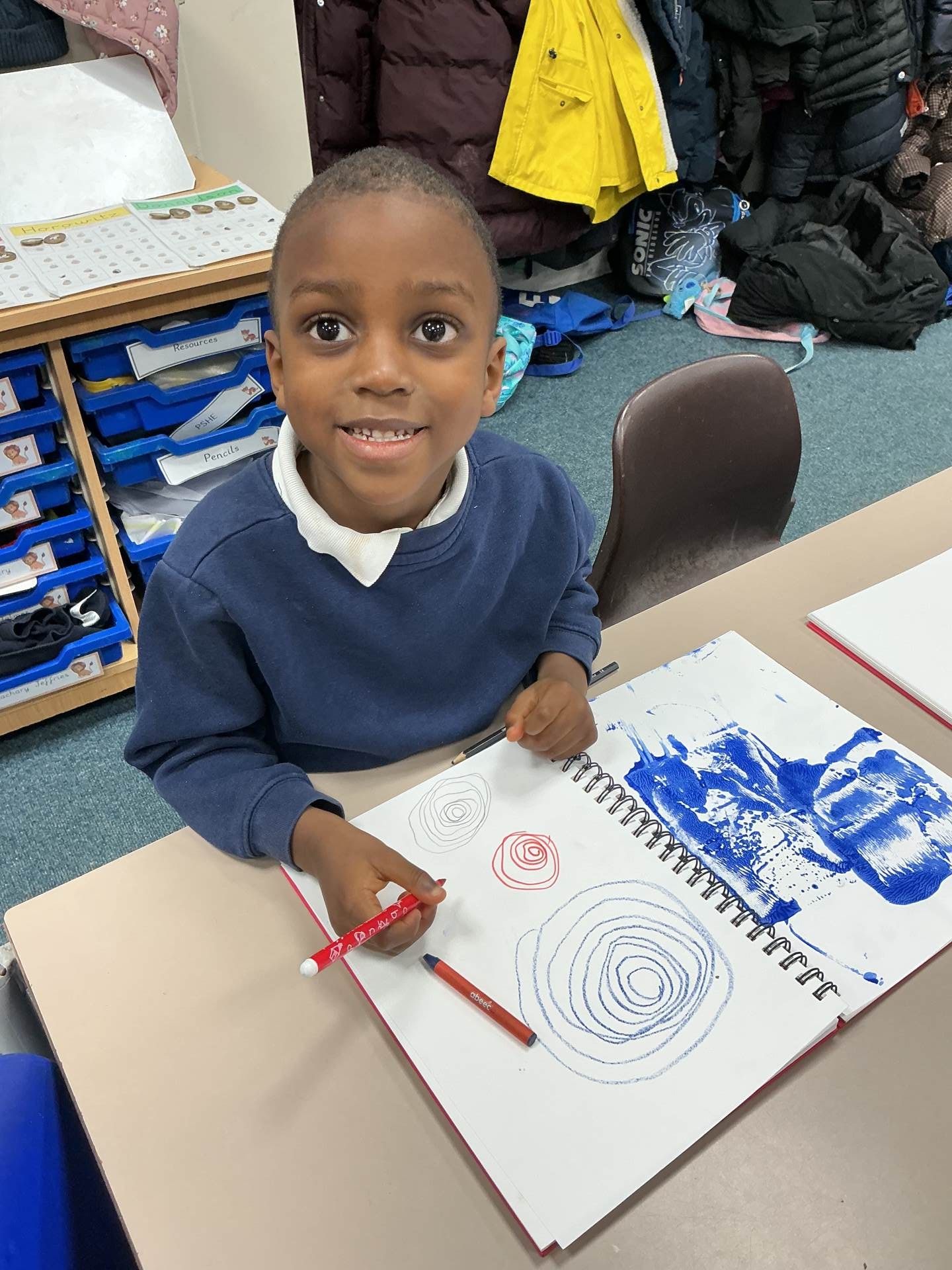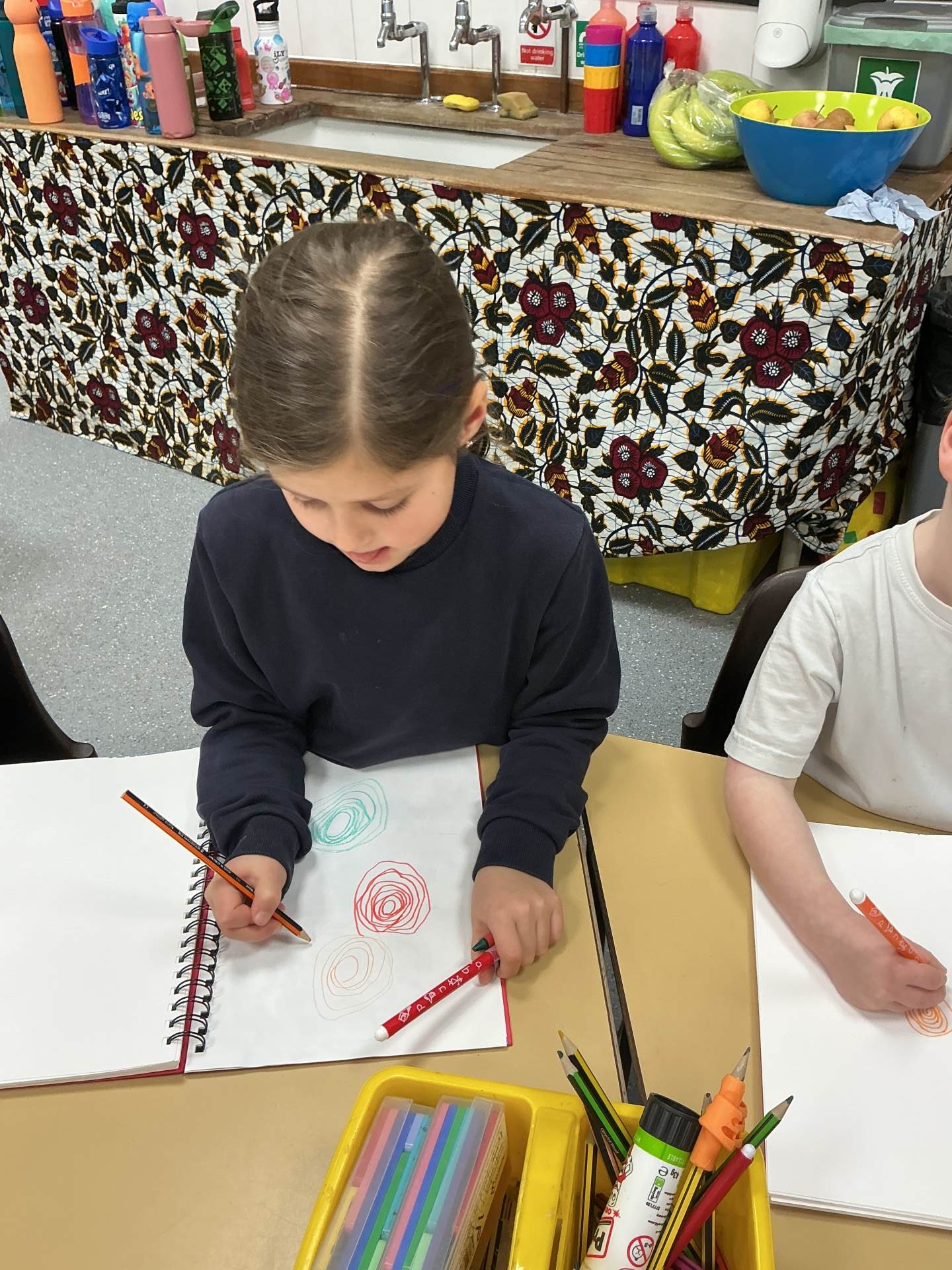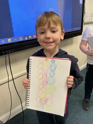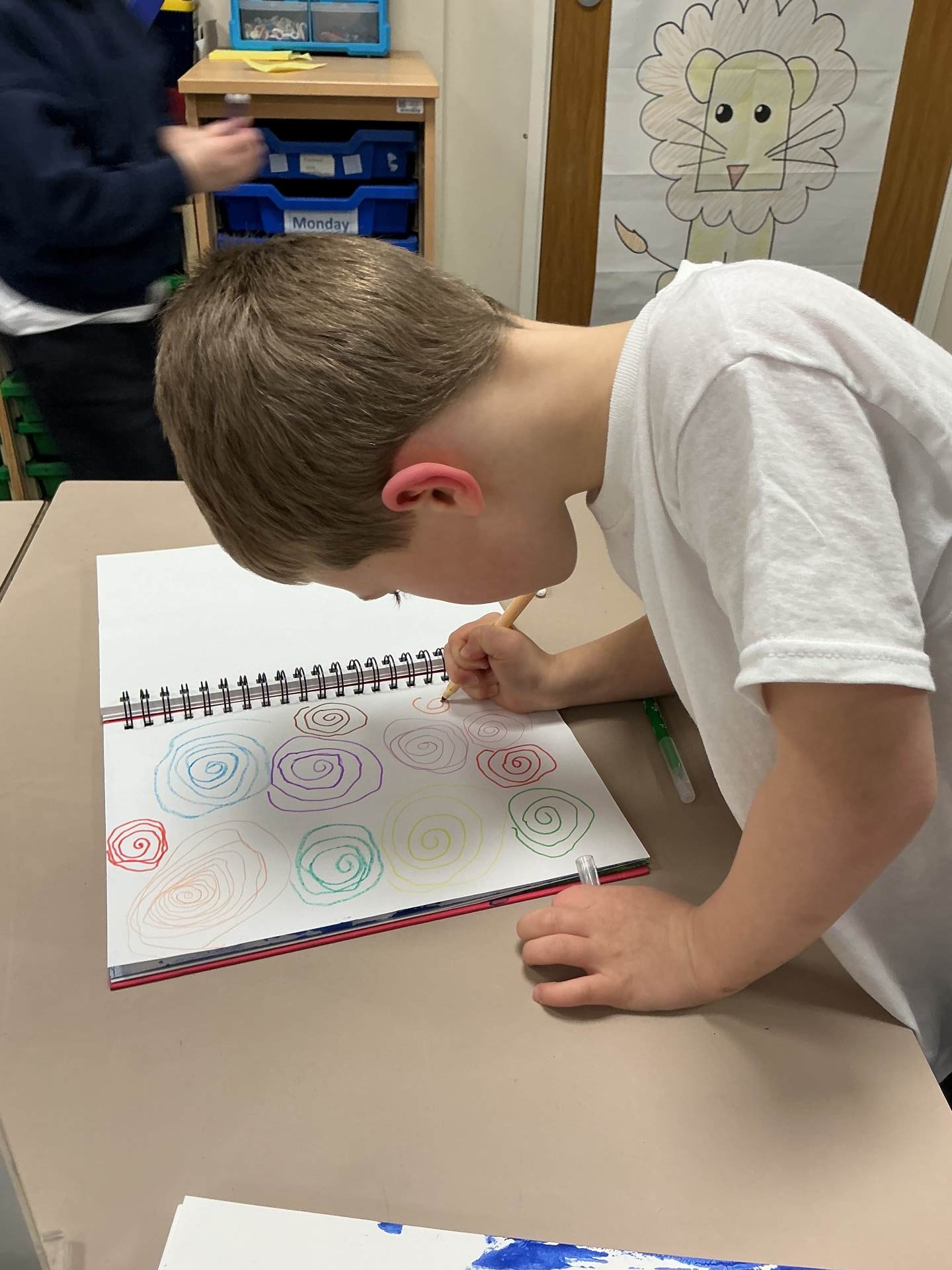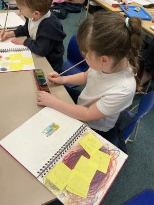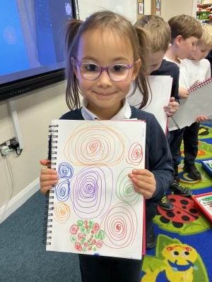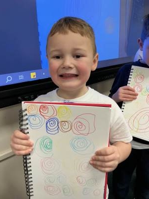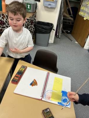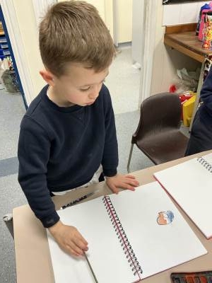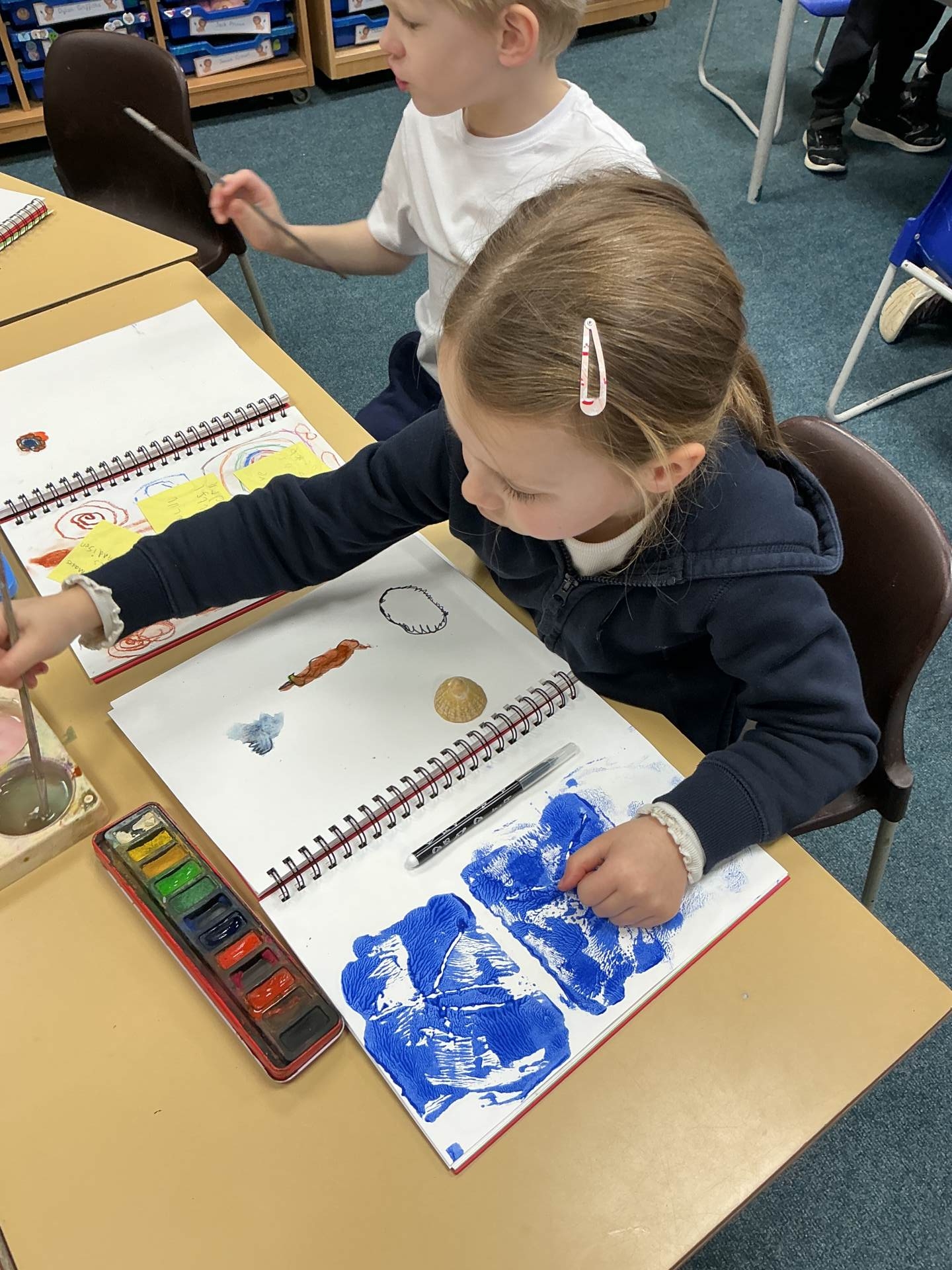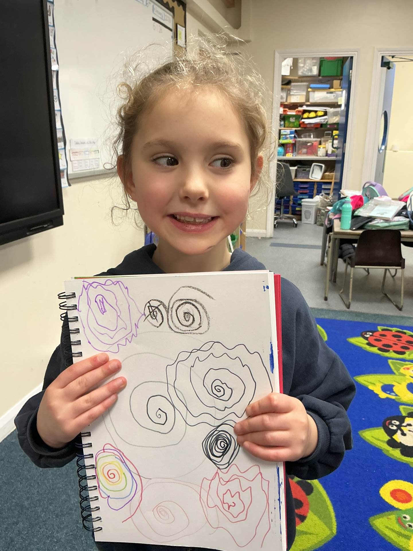 In table groups, we used either our hand or foot to print randomly across a large piece of paper using a different colour each. Next week we will be using them as our canvas for more Artwork!