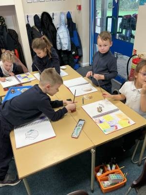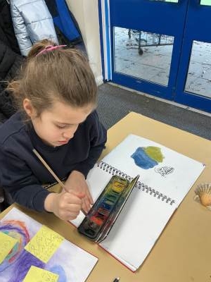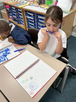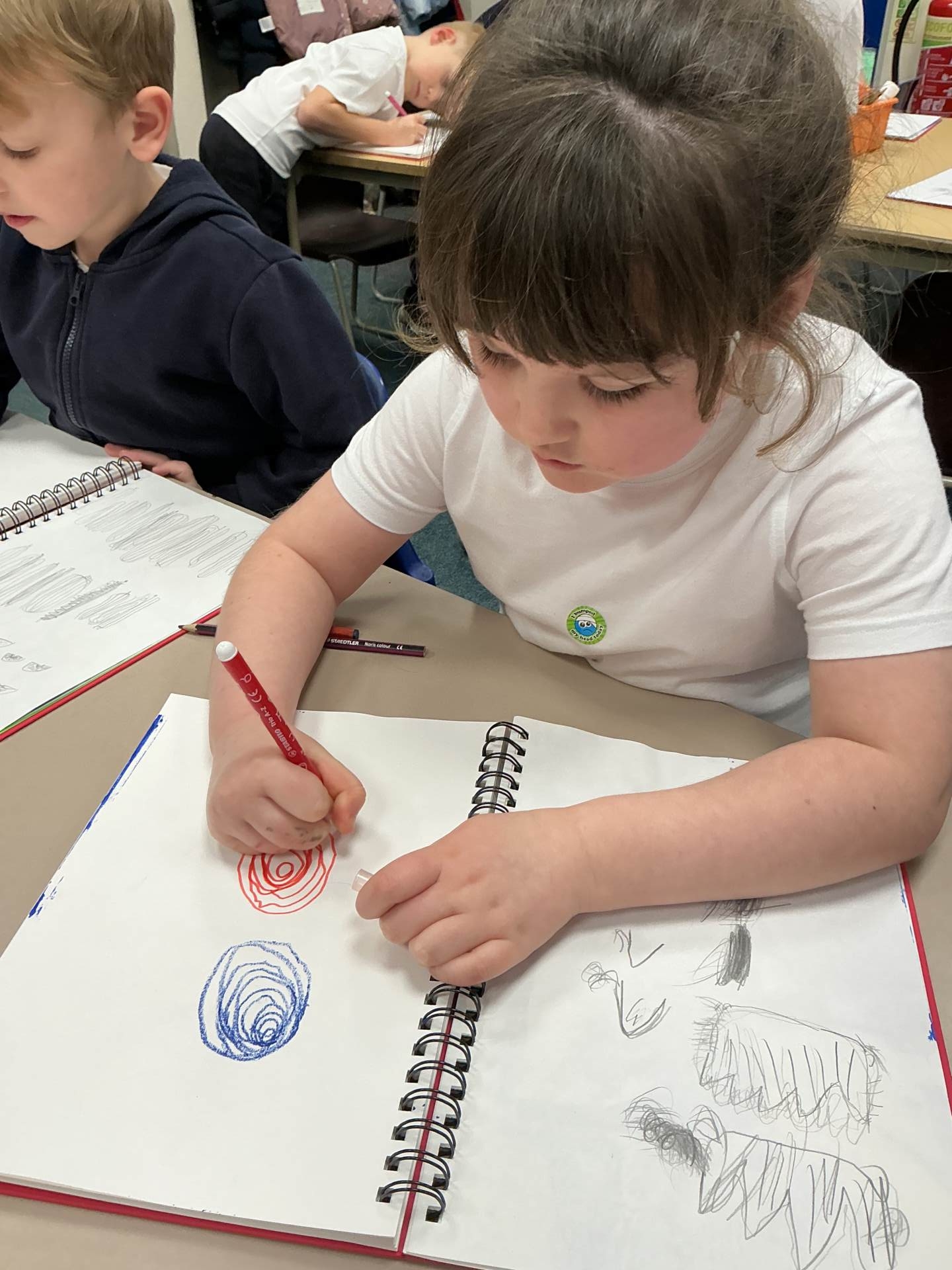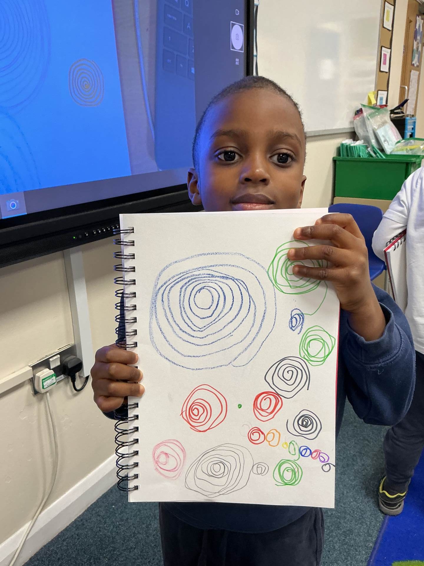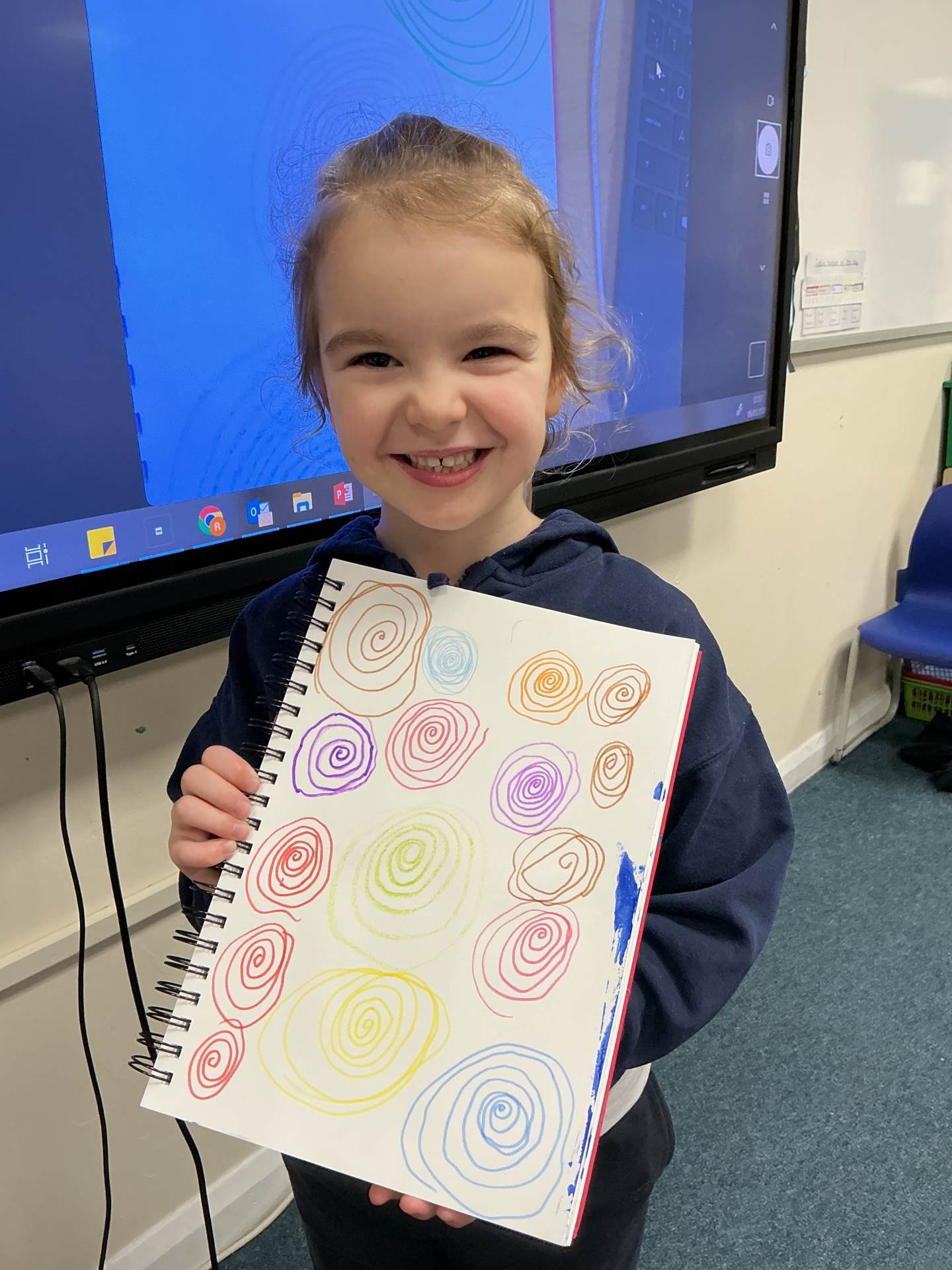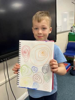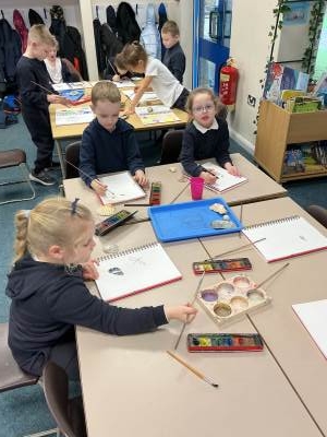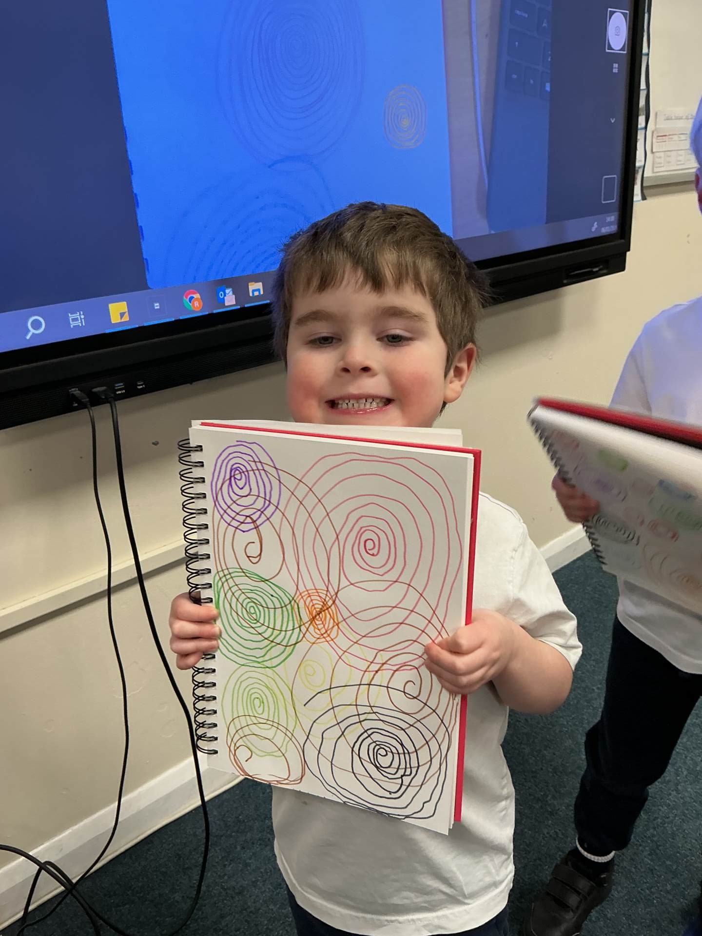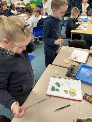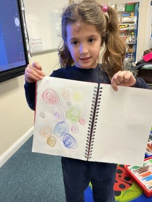 In table groups, we used either our hand or foot to print randomly across a large piece of paper using a different colour each. Next week we will be using them as our canvas for more Artwork!