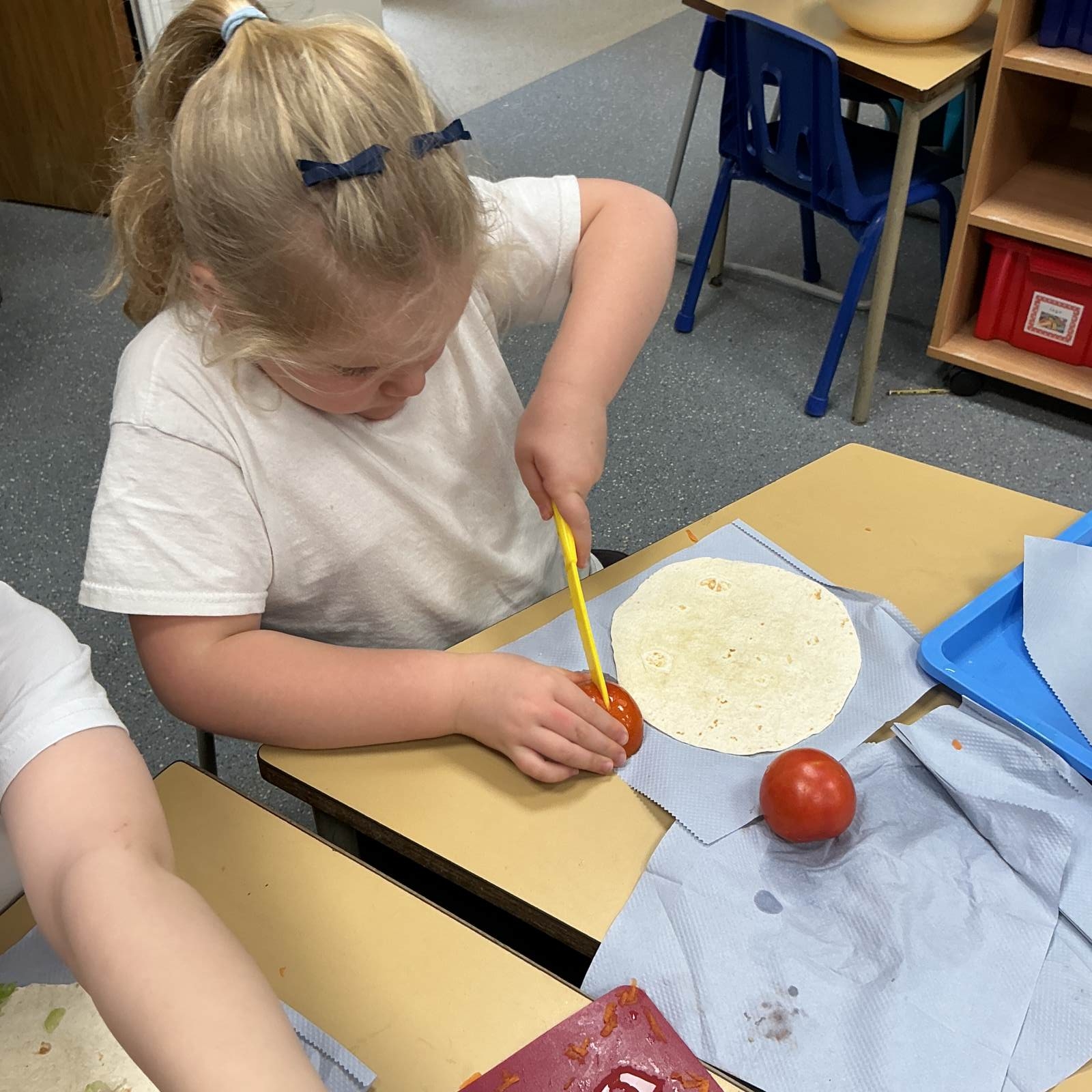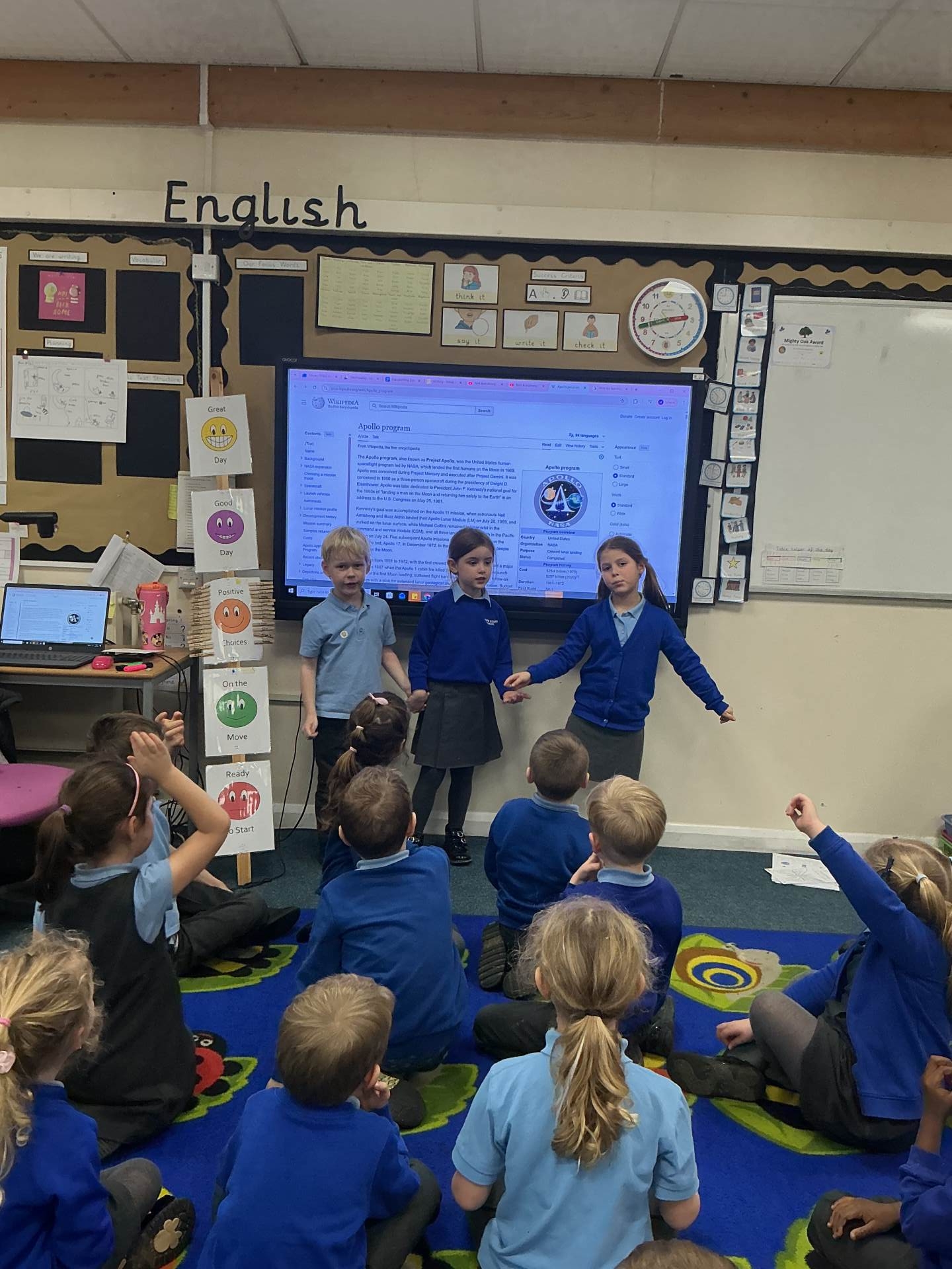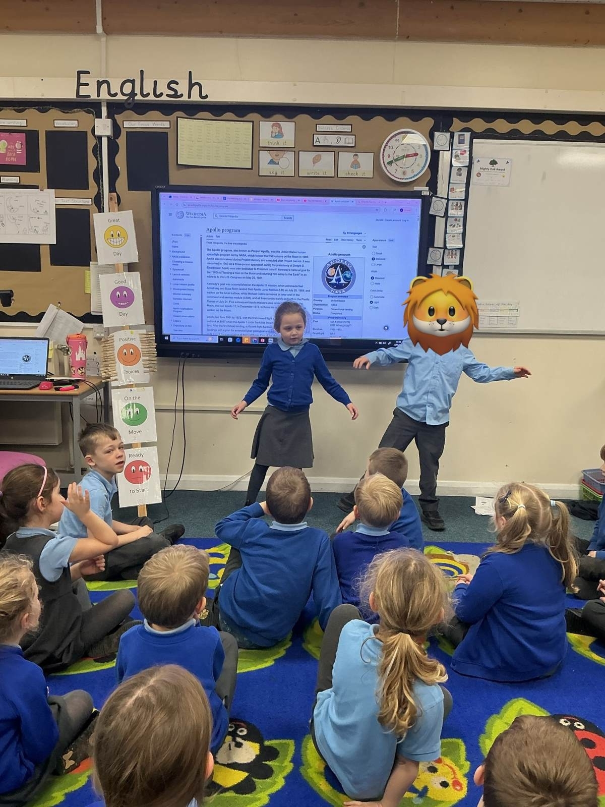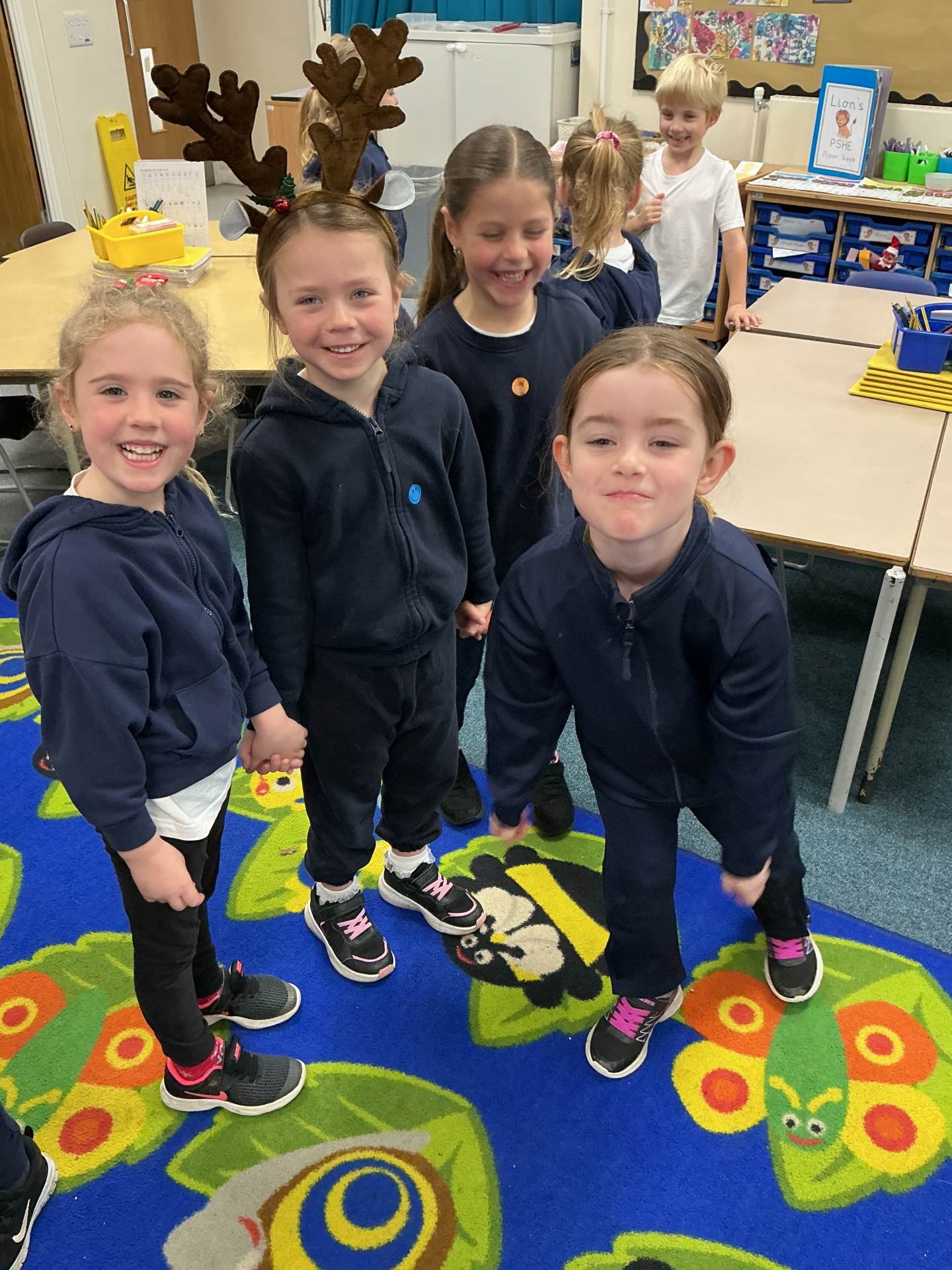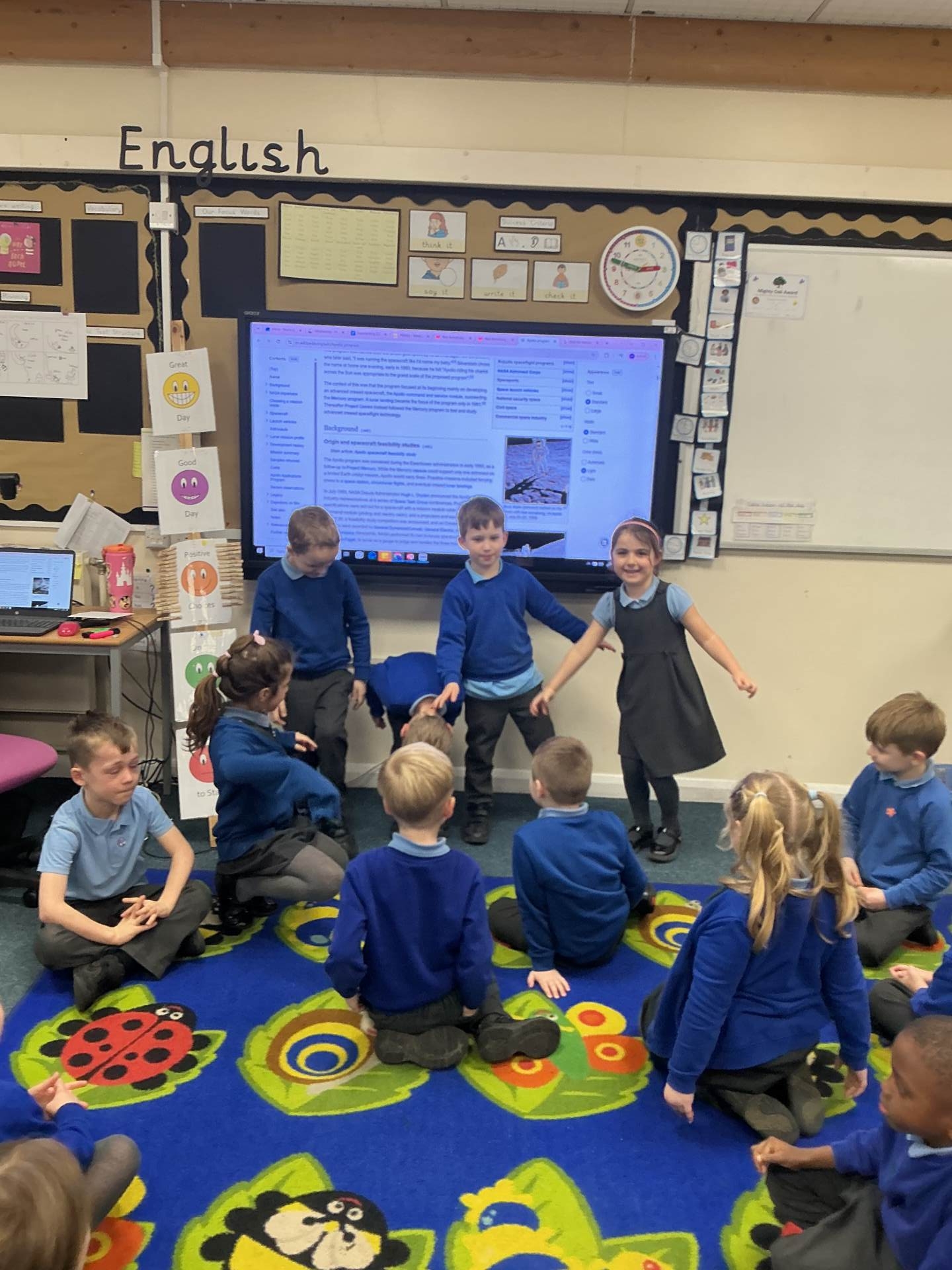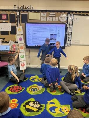 We were acting different parts of the story in the book Giraffes Cant Dance.