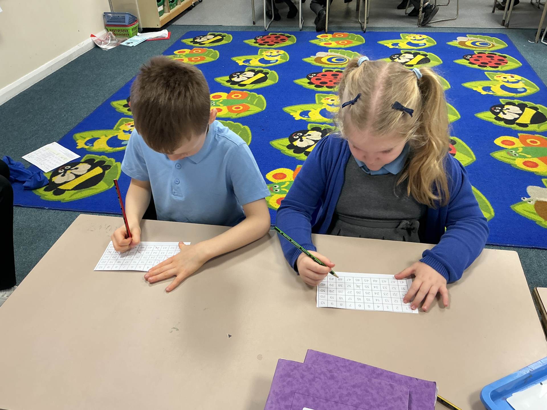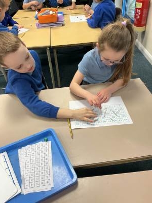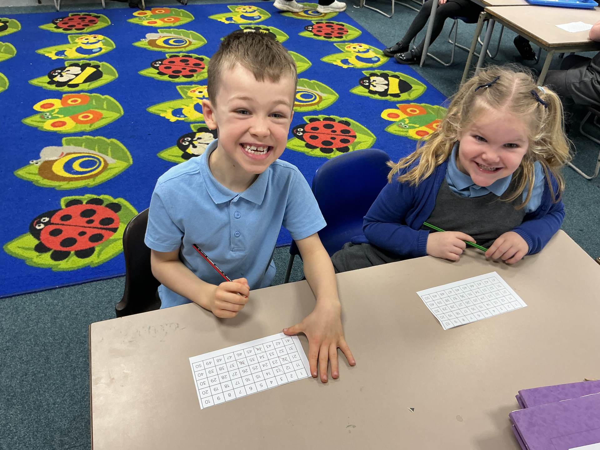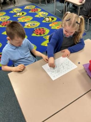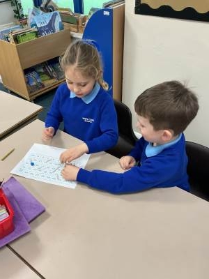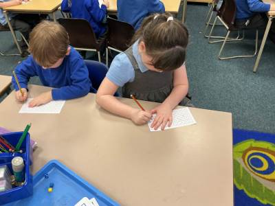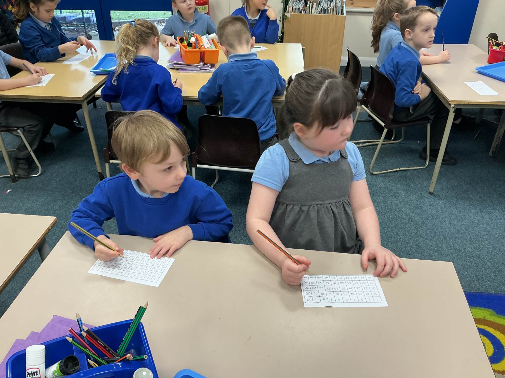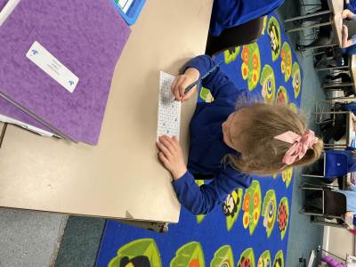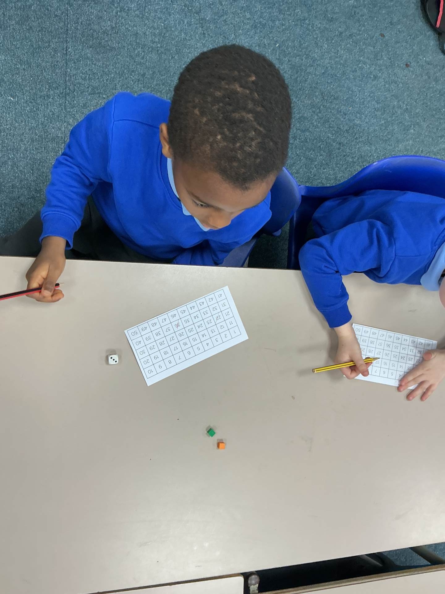 Maths - we were looking at numbers 1-50 getting used to what order they go in playing snakes and ladders and becoming more familiar with where they appear in a number square playing bingo.