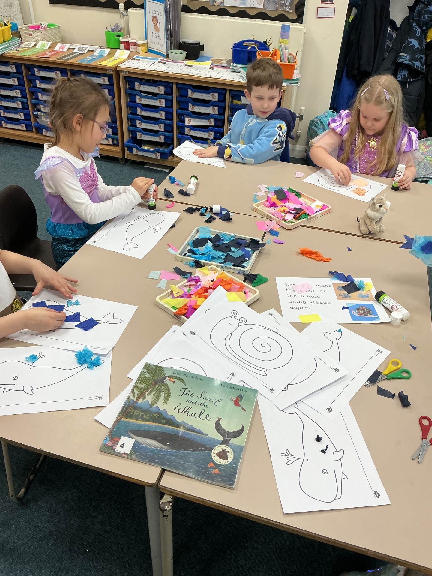 For World Book Day, the children had great fun dressing up as their favourite word or phrase. We enjoyed completing a range of Julia Donaldson themed activities, including making Play-Doh Gruffalos and creating a Snail and the Whale collage. We also made the most of the sunshine by reading outside with our Year 3 reading buddies, which was a lovely way to celebrate our love of books together.