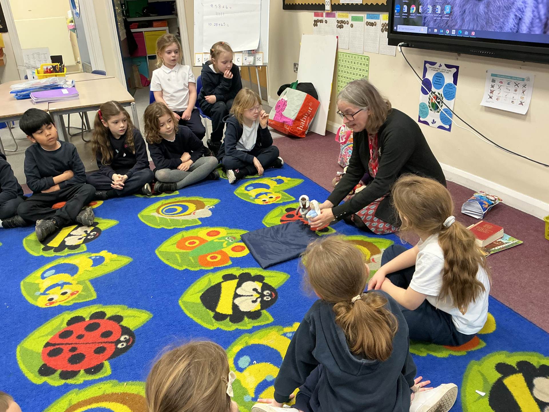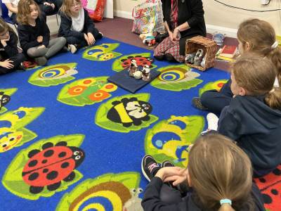 This week we had Sheena and Katie visit to discuss the Nativity story. They used puppets to retell the story and encouraged the children to consider what they could learn from it.