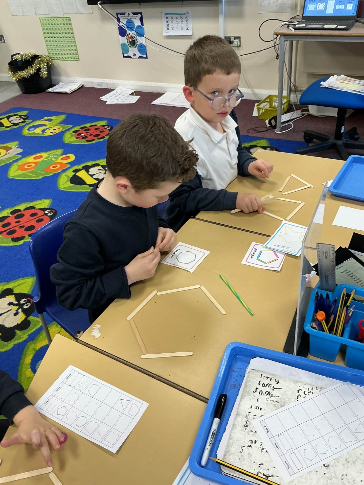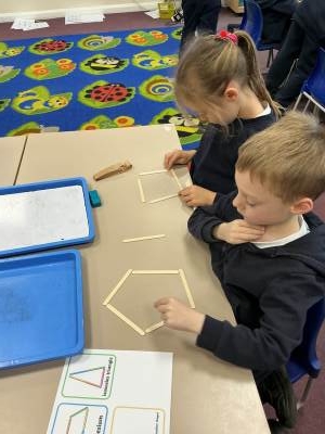 This week Wolf class have been exploring 2D shapes. We enjoyed completing a range of activities such as making 2D shapes using geoboards, straws, playdough and lollysticks. We also drew 2D shapes using a ruler.